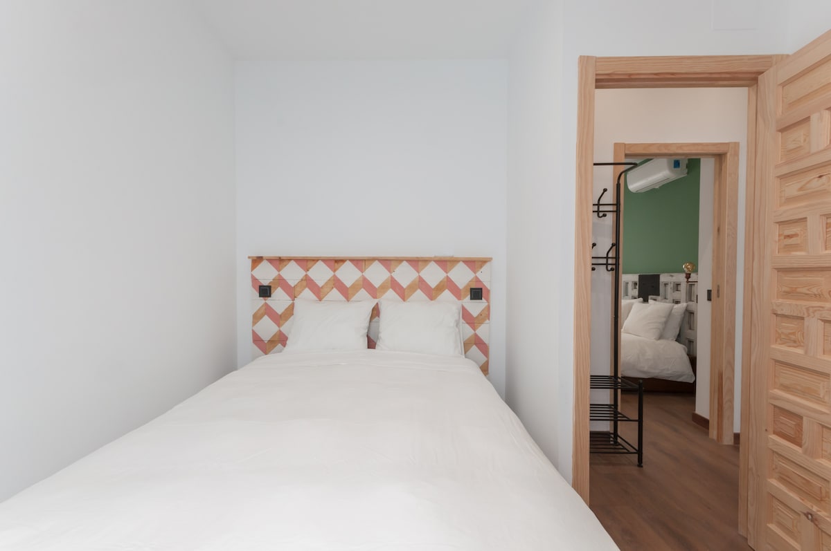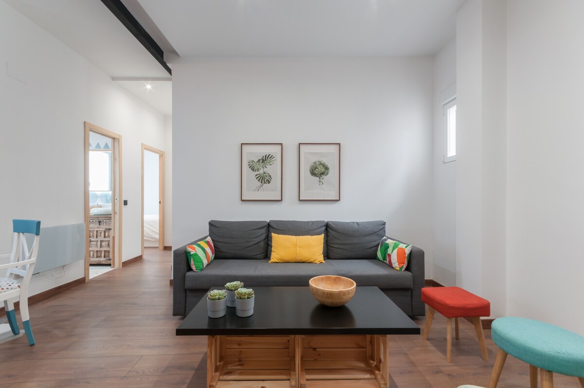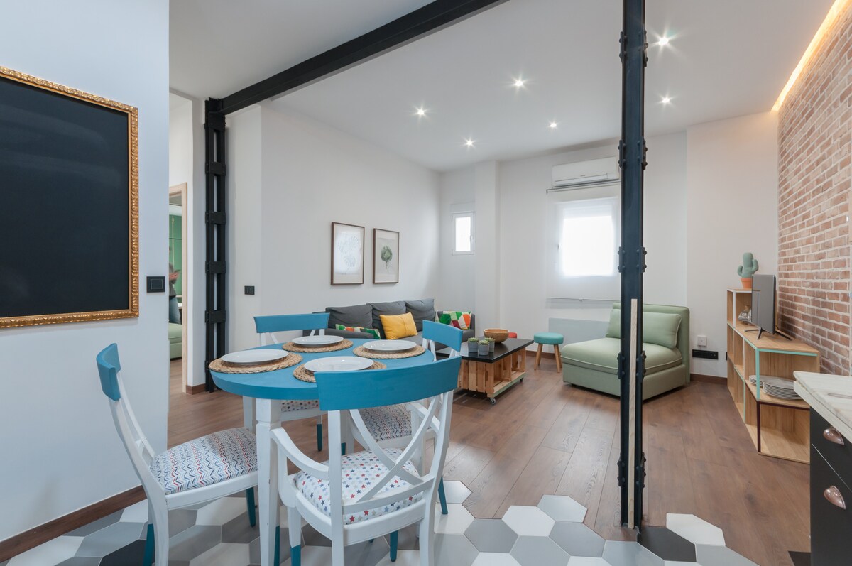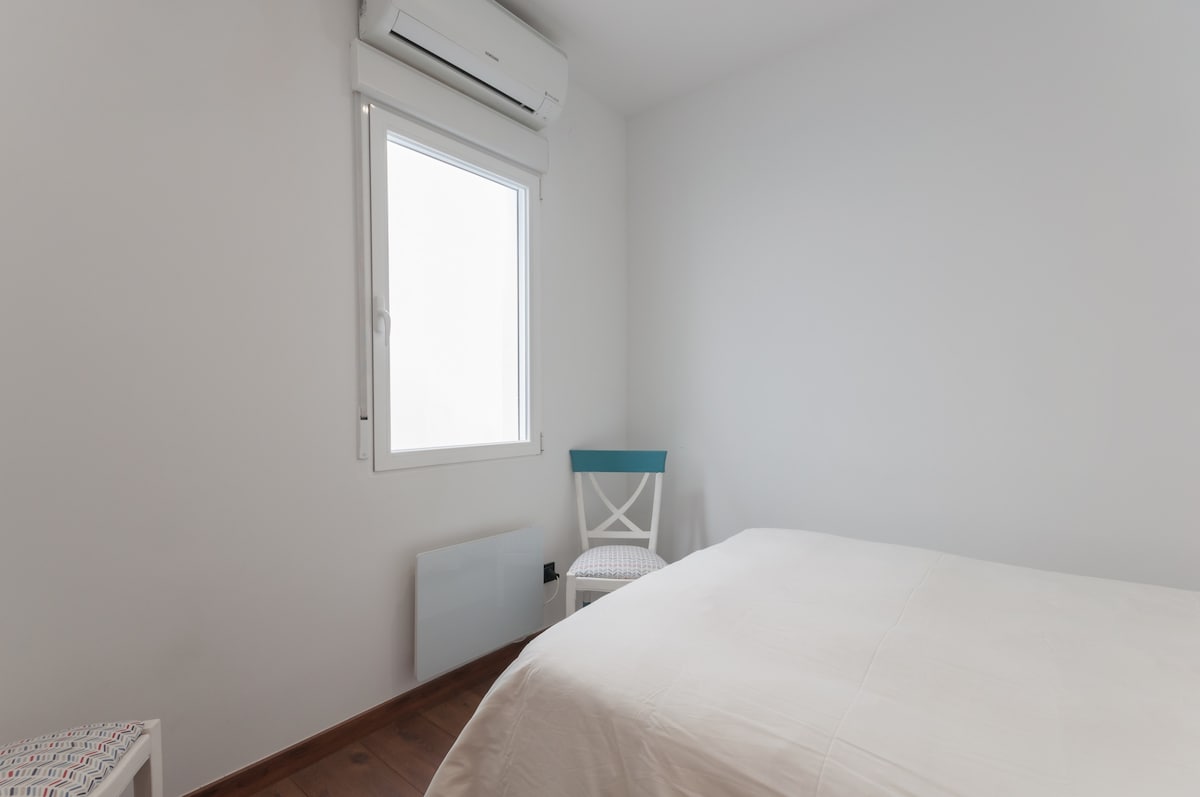 Air conditioning in the living room and WIFI to enjoy Madrid. Beautiful apartment completely new, Fully equiped. 65 squared meters of good taste.Two bedrooms with double bed, One bathroom and kitchen.