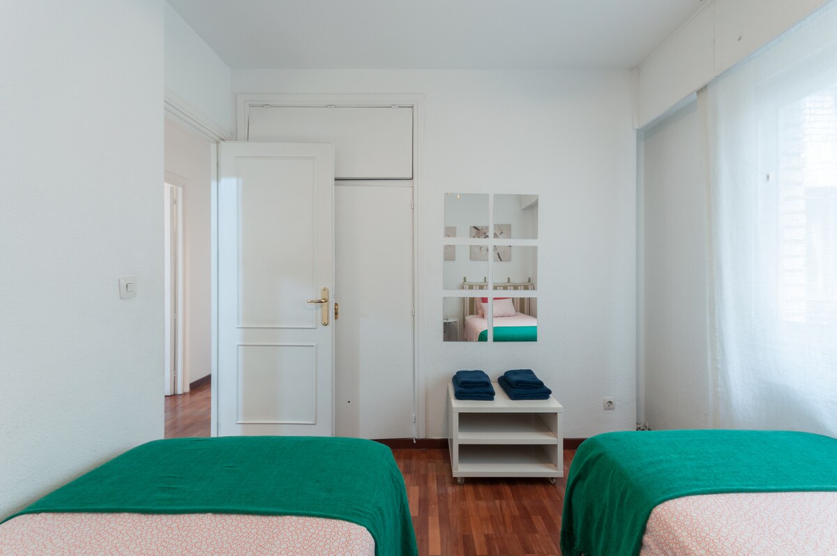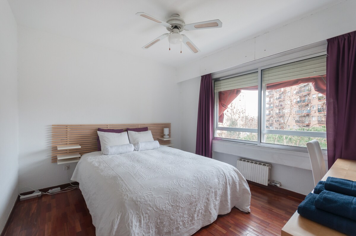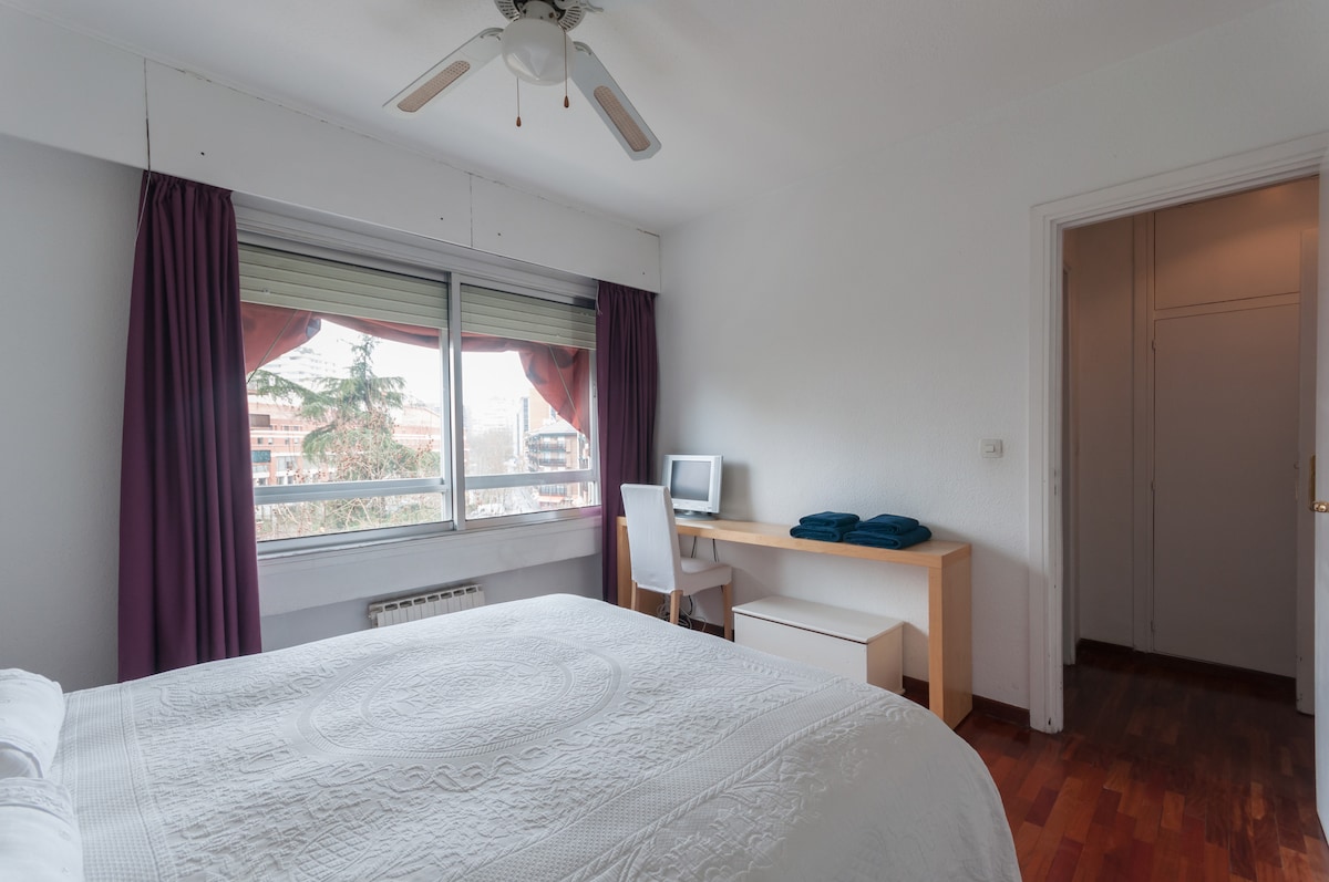 Spacious and bright apartment with 3 bedrooms, 3 bathrooms, large living room, equipped kitchen, small terrace and parking, we fit 4 adults + 3 children well. It's a bit old but it's very well looked after and has everything. Ideal location to spend a few days in Madrid with children, in a quiet neighborhood in front of a small park with games and terrace for parents, 10 min walk from Berlin Park and 3 metro stations from Retiro Park, next to restaurants, supermarkets, very easy transport to anywhere. Totally recommended!!!
