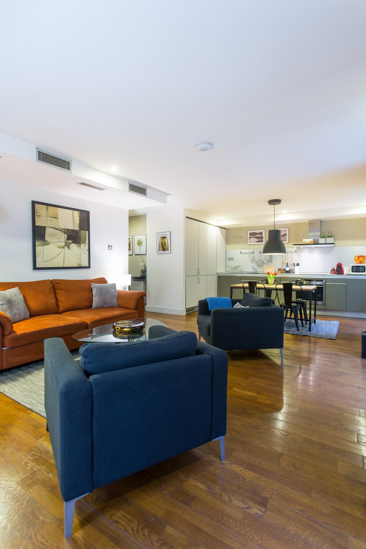 Neat, clean apartment in a terrific area of Madrid. Everything is updated. The bedroom was very comfortable, spacious and lovely and the bathrooms were newly renovated. The apartment is in a great central location. The posting says that it sleeps 4 but the pullout sofa is really more like a futon - my teenage son was able to sleep on it ok by himself - two young children may fit on it- but two adults would not sleep comfortably. Overall, we enjoyed the apartment very much and had a lovely stay!
