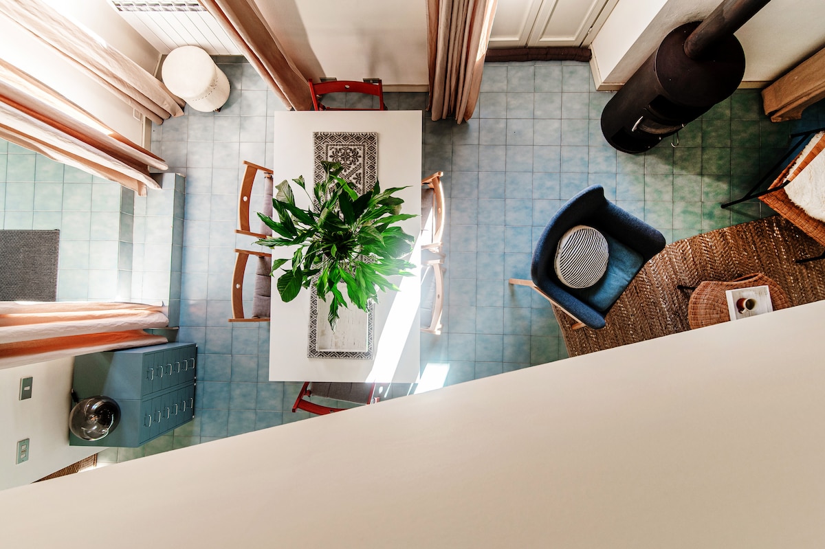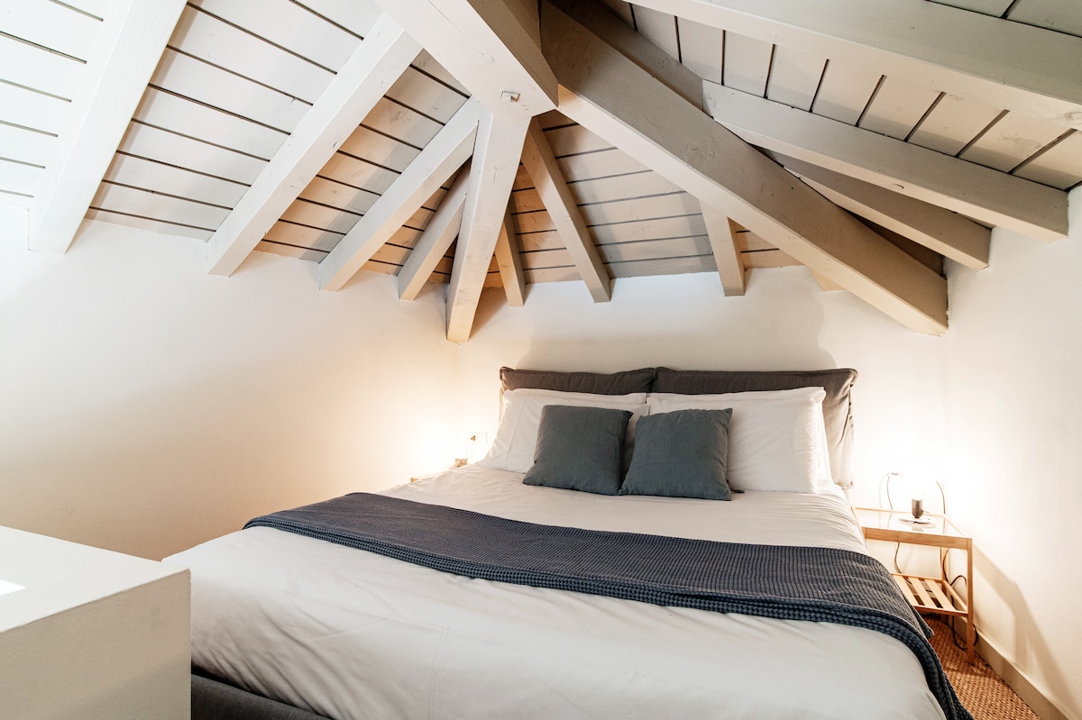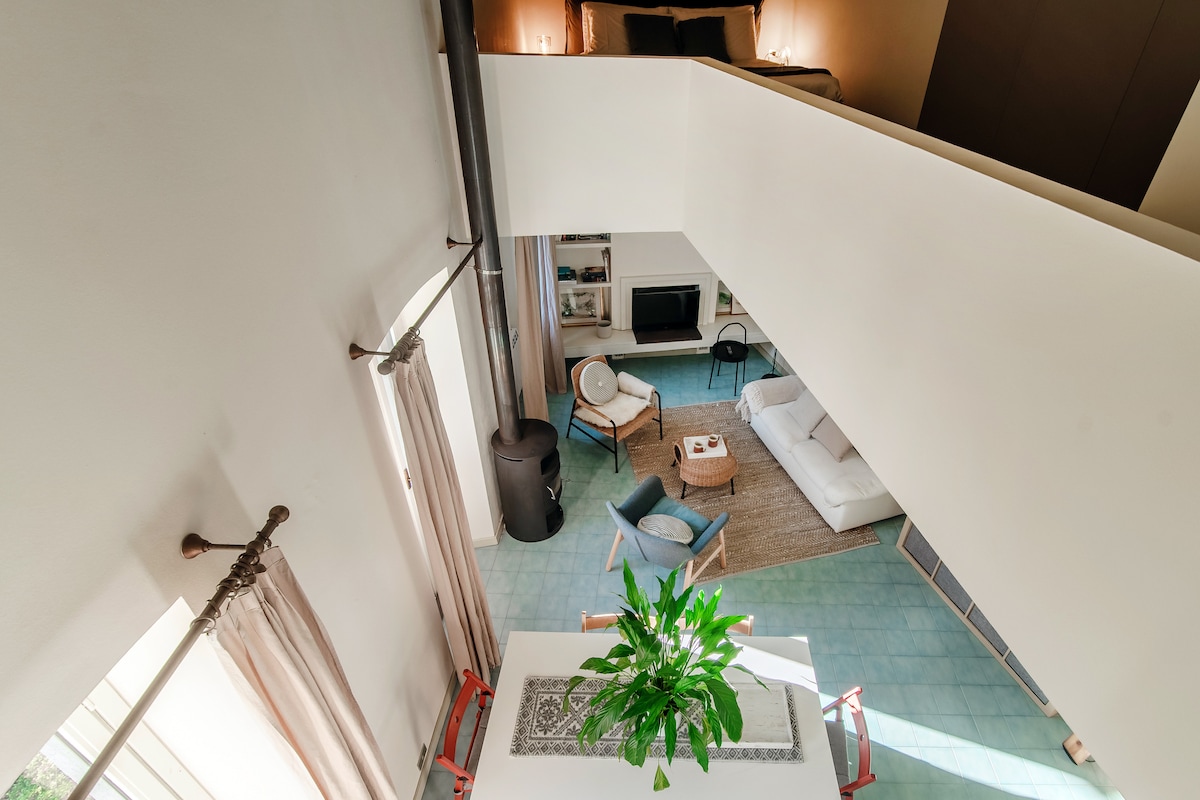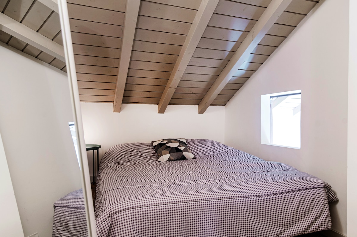This apartment is spread over two floors and can accommodate up to 4 people. The loft on the upper floor houses the sleeping area, including a double bedroom, 2 single bedroom, and a bathroom with a shower. On the lower floor, you will find the living area, including a fully equipped kitchen with a dining table and a living room with a sofa and a television. The loft is equipped with air conditioning, allowing you to keep the spaces cool even on the lower floor.Guest access