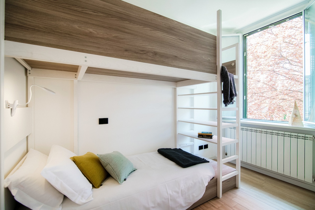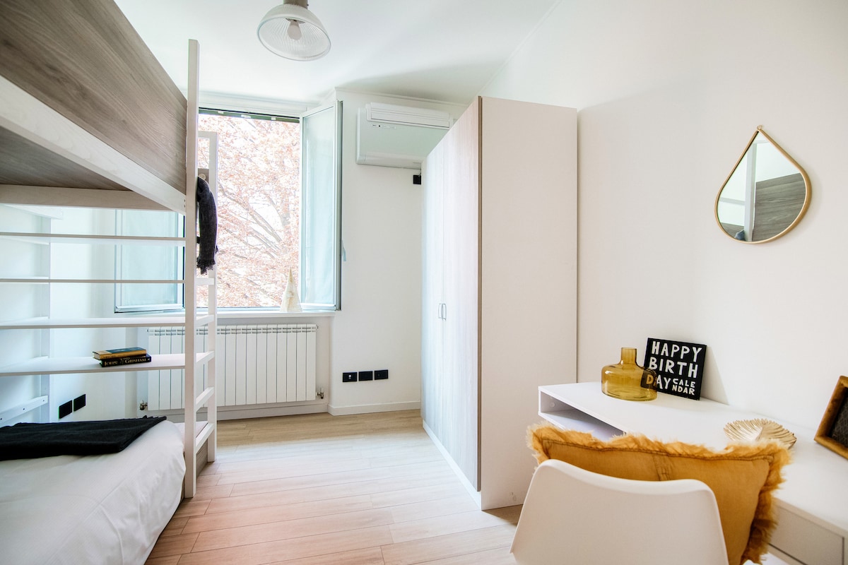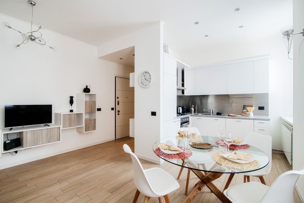 This apartment is very bright and modern, and it can accommodate up to 6 guests. There are 2 bedrooms (one with a double bed, one with a bunk bed) and a living room with a sofa bed. The kitchen is properly equipped for cooking a family dinner. There is one bathroom.Guest access