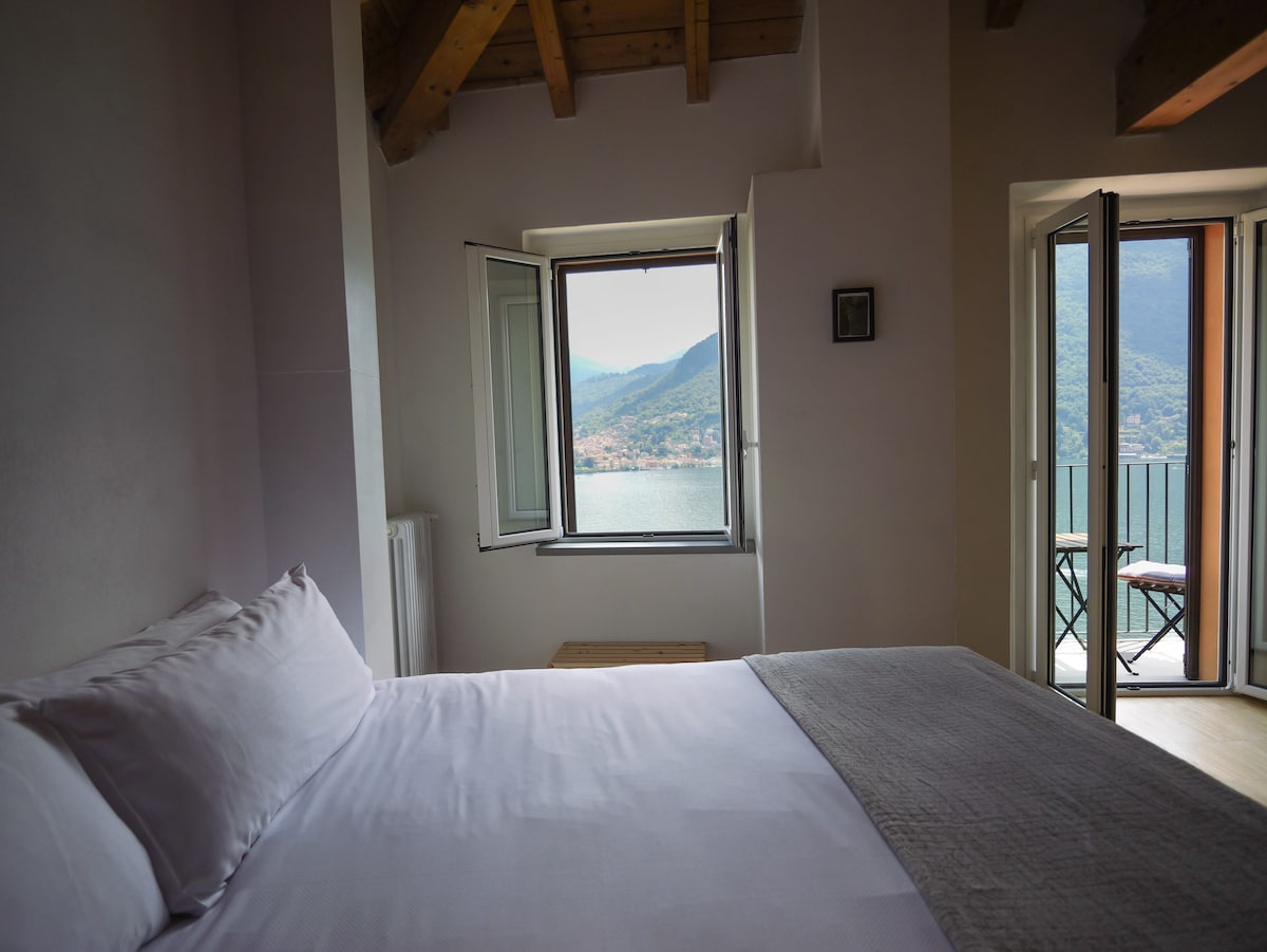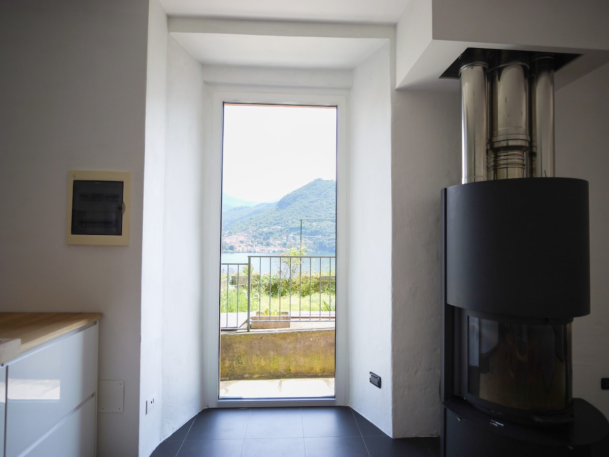 "Up & Up" can accommodate up to 6 people. There are two double bedrooms and a mezzanine with 2 single beds, one full bathroom with a shower. The spacious living room is equipped with a TV, free Wi-Fi, and a lovely sofa with a lake view. The kitchen is equipped with all the necessary appliances to prepare the best Italian dishes.Guest access