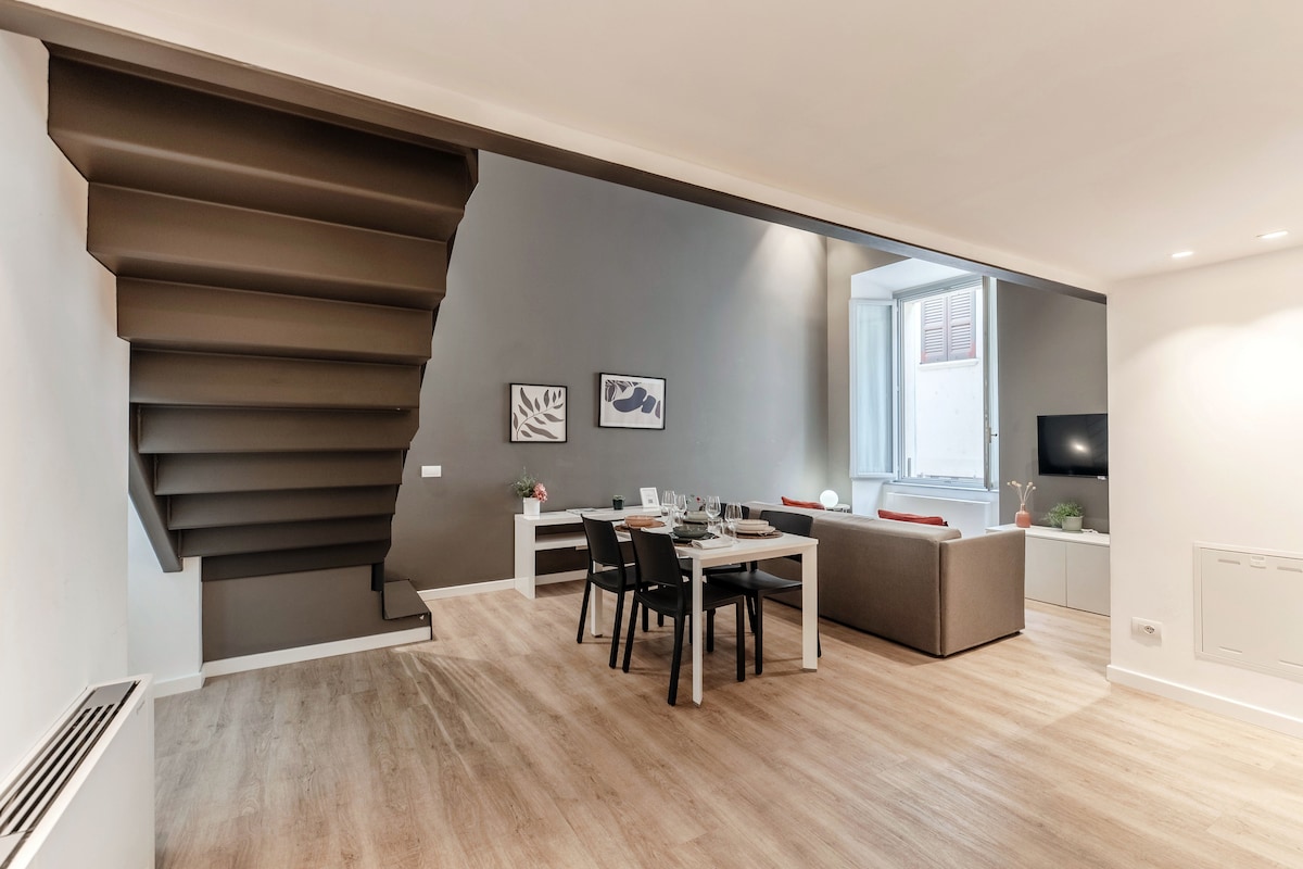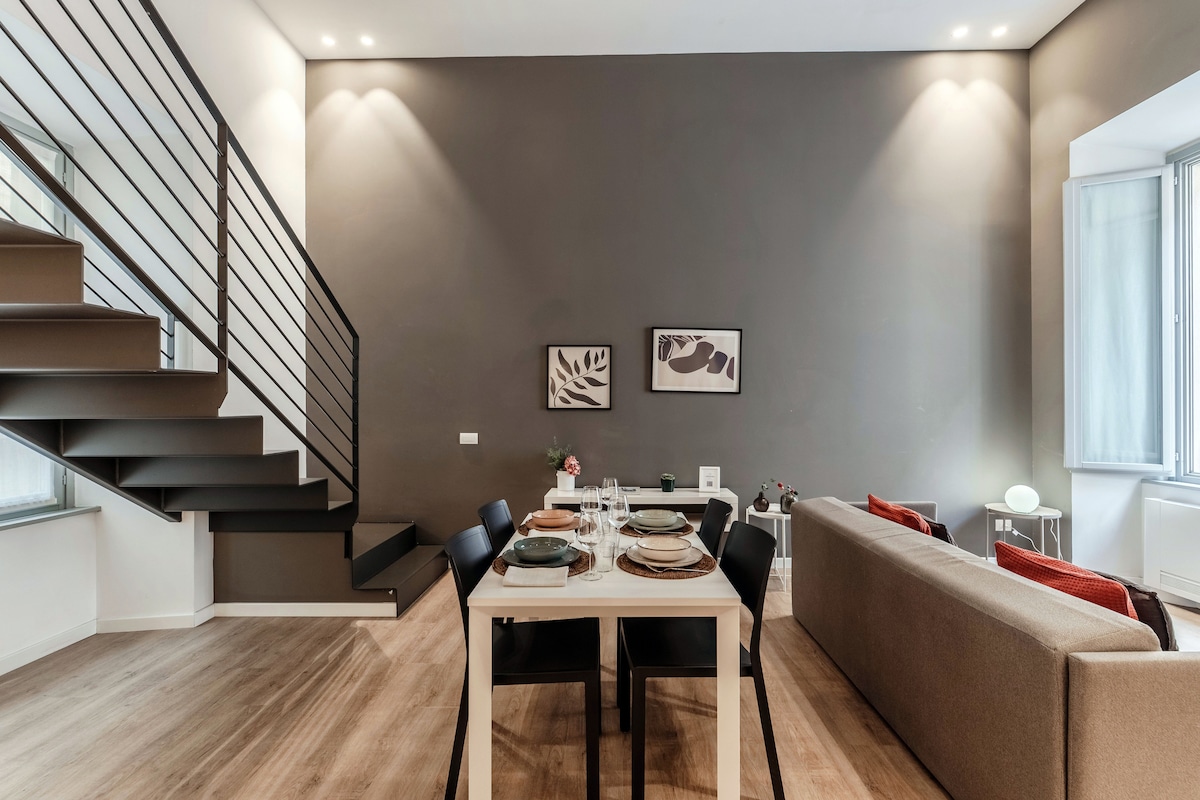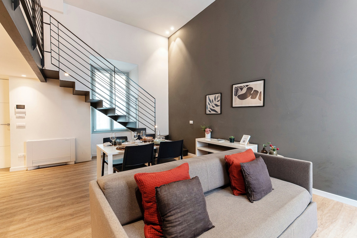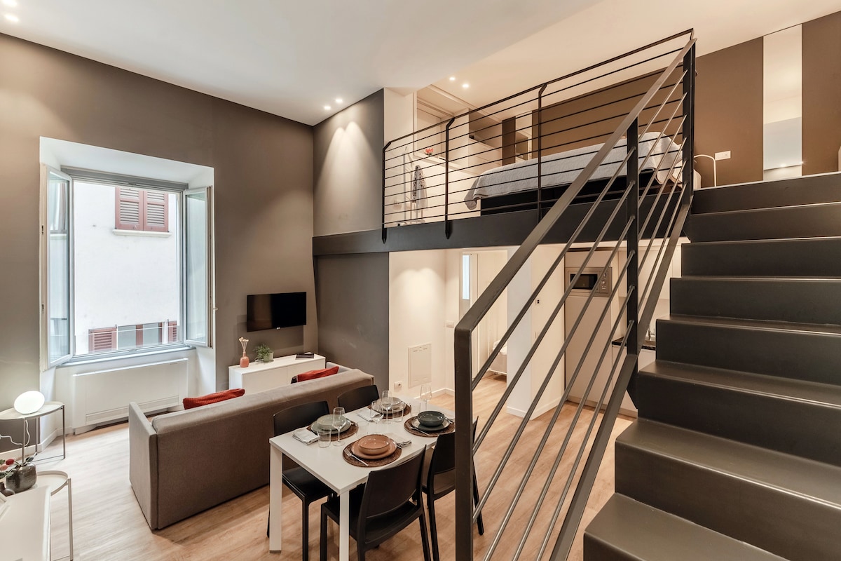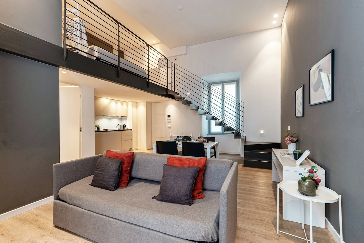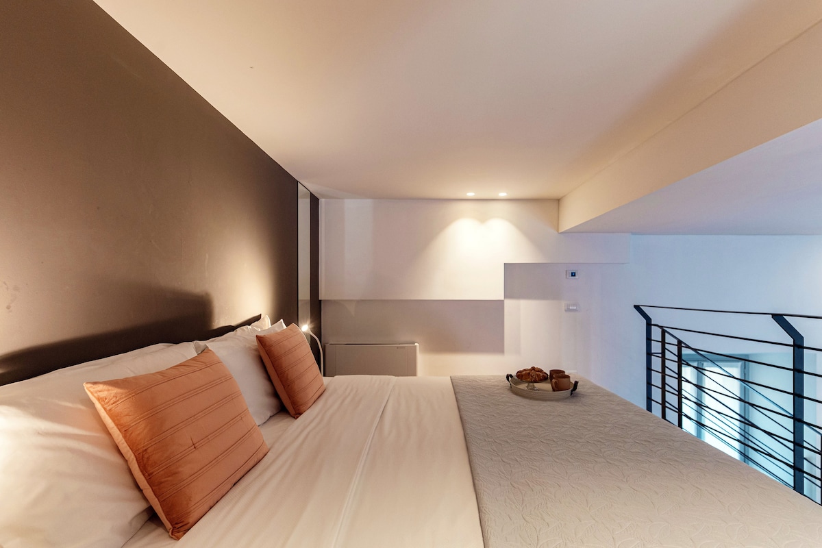 “Grimoldi Suite” can accommodate up to four people. There is a double bedroom in the loft and a sofa bed in the living area downstairs. The suite has a bathroom.Guest access