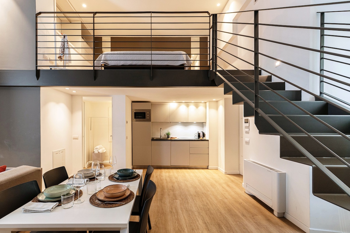 This place is fantastic. The furniture is modern, clean, and feels like it is brand new. The flat feels spacious with its high ceiling, while still feeling cozy. I could easily use the kitchen table to work for a few days, and the chairs were comfortable enough to that end. The apartment is very close to businesses: great restaurants, Lake Como, and a street fair are only a few minutes away walking. The laundry is shared on the floor, but not busy. Drying clothes was very quick as the heating system in the bathroom is very efficient, and keeps the air there constantly warm and dry. Finally, the bedroom is very comfortable, and the linens are of great quality. I missed blackout windows, but the bedroom doesn't get very bright in the morning anyway. The host is very attentive and promptly replied to any questions I had.