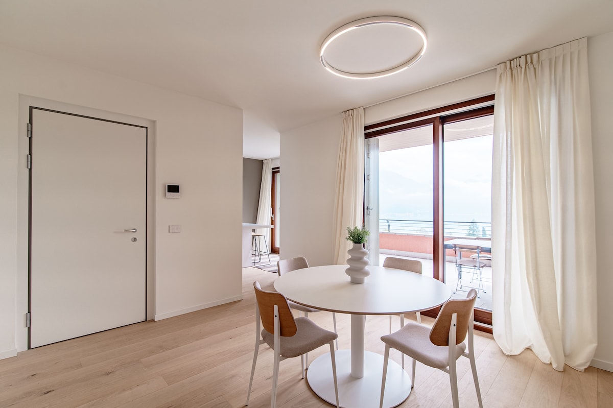 This is a beautiful, well-appointed unit with an amazing lake view. The outdoor patio is spacious and has wonderful views. Everything is new and in great condition. The kitchen was pristine and had everything we needed. You can walk into Menaggio down quiet streets and easily get to the ferry. The large Carrefour is just over the hill 15 minutes away in Porlezza. The pool and jacuzzi area look wonderful although they had just closed it for the season before we arrived. We would definitely stay in this unit again.