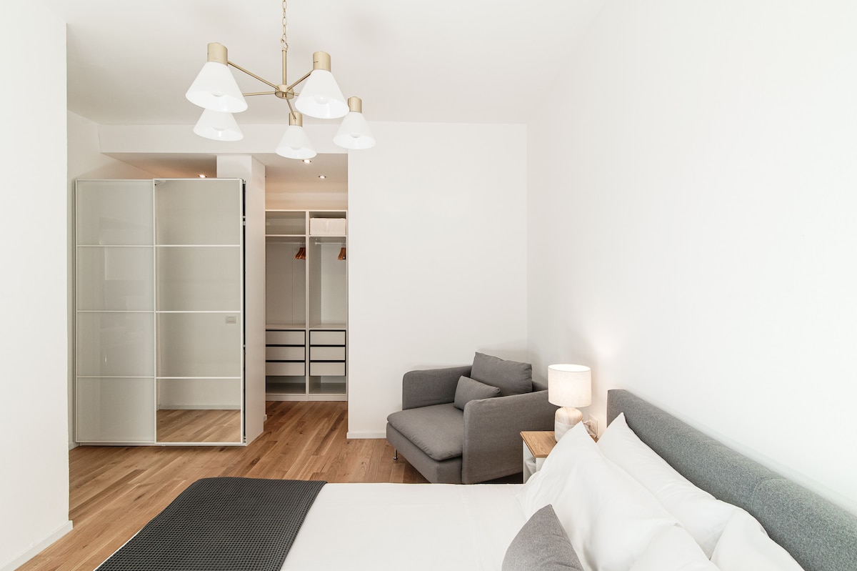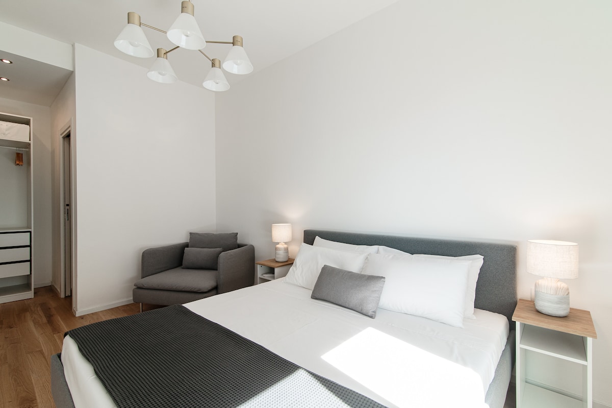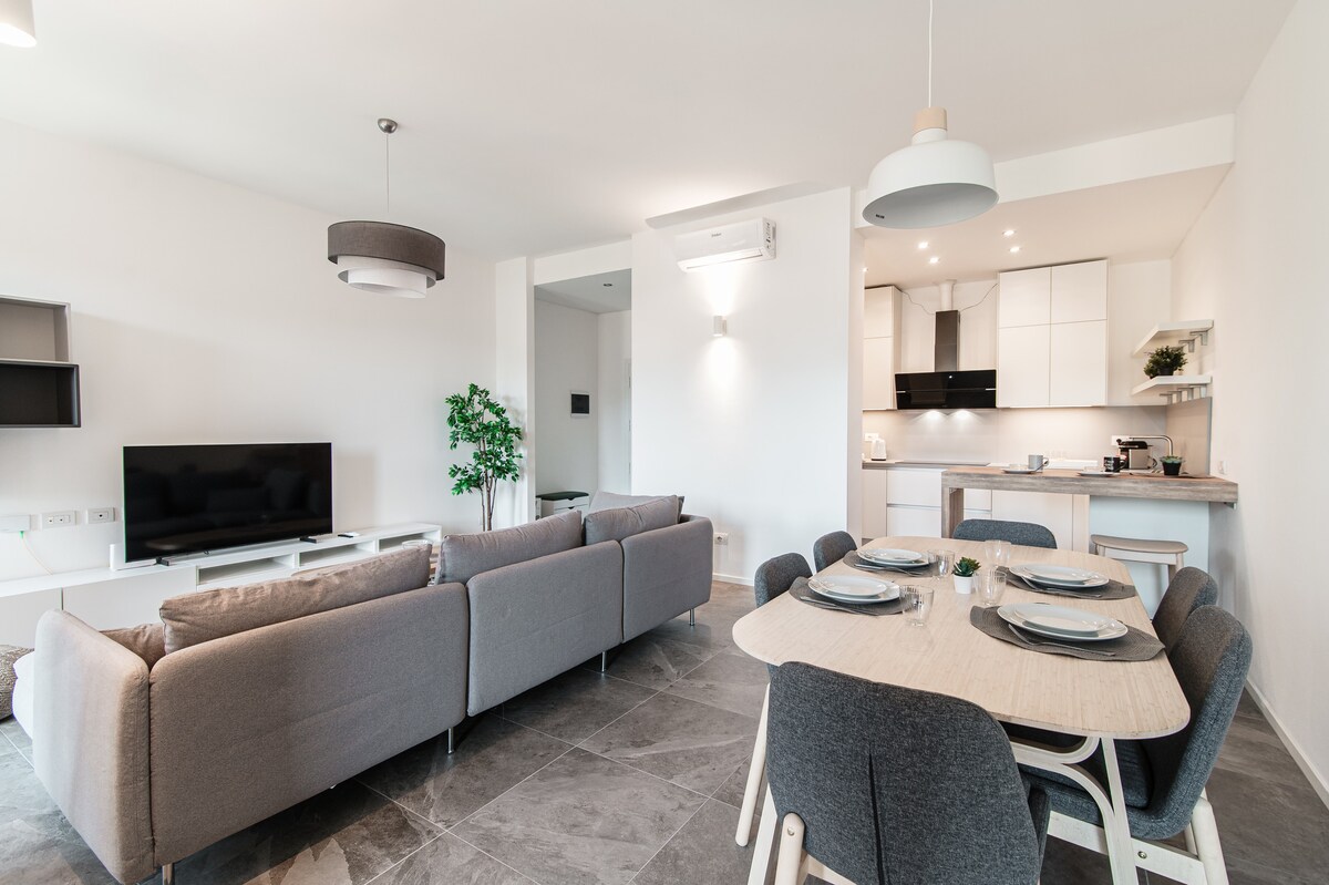 This apartment can accommodate up to 4 people. There are two bedrooms, one with a double bed - equipped with a spacious walk-in closet, and one with two single beds, a living area with a fully equipped kitchen and a living room, and two bathrooms, one with a shower and one with a whirlpool bathtub and a washing machine. Furthermore, all rooms have air conditioning and free wi-fi is available for guests.Guest access