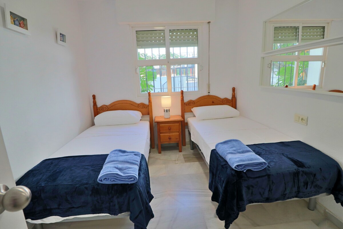 A modern two bedroom apartment situated in an excellent location between Benalmadena and Fuengirola. This newly renovated apartment has a lovely bright living room with spacious dining area and open-plan fully equipped kitchen. The living room opens onto a large sunny terrace which overlooks the stunning gardens and swimming pool. This apartment consists of a comfortable double bedroom which is tastefully furnished ideal for a relaxing atmosphere. The double bedroom has a new en suite bathroom. There is a twin bedroom and a main bathroom opposite.The apartment has free WiFi and a TV system which offers a very wide range of English TV channels as well as many other European TV channels.This apartment is in a great location in the stunning urbanisation of Torremuelle. There is a supermarket opposite as well as a few bars and restaurants. The area also has a bakery and some other great restaurants. The bus stop is just 1 minute walk from the apartment and there is also a train stop in Torremuelle making this area extremely accessible without a car.Other things to note
