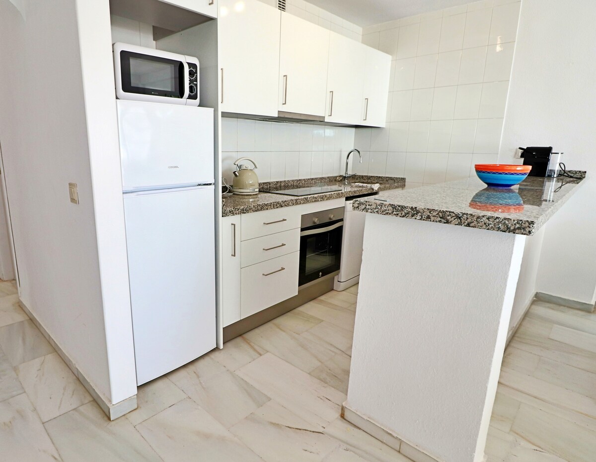 A modern two bedroom apartment situated in an excellent location between Benalmadena and Fuengirola. This newly renovated apartment has a lovely bright living room with spacious dining area and open-plan fully equipped kitchen.