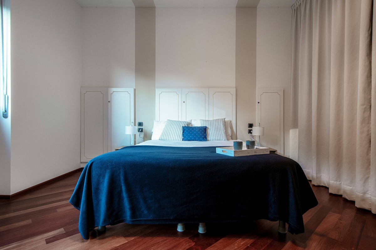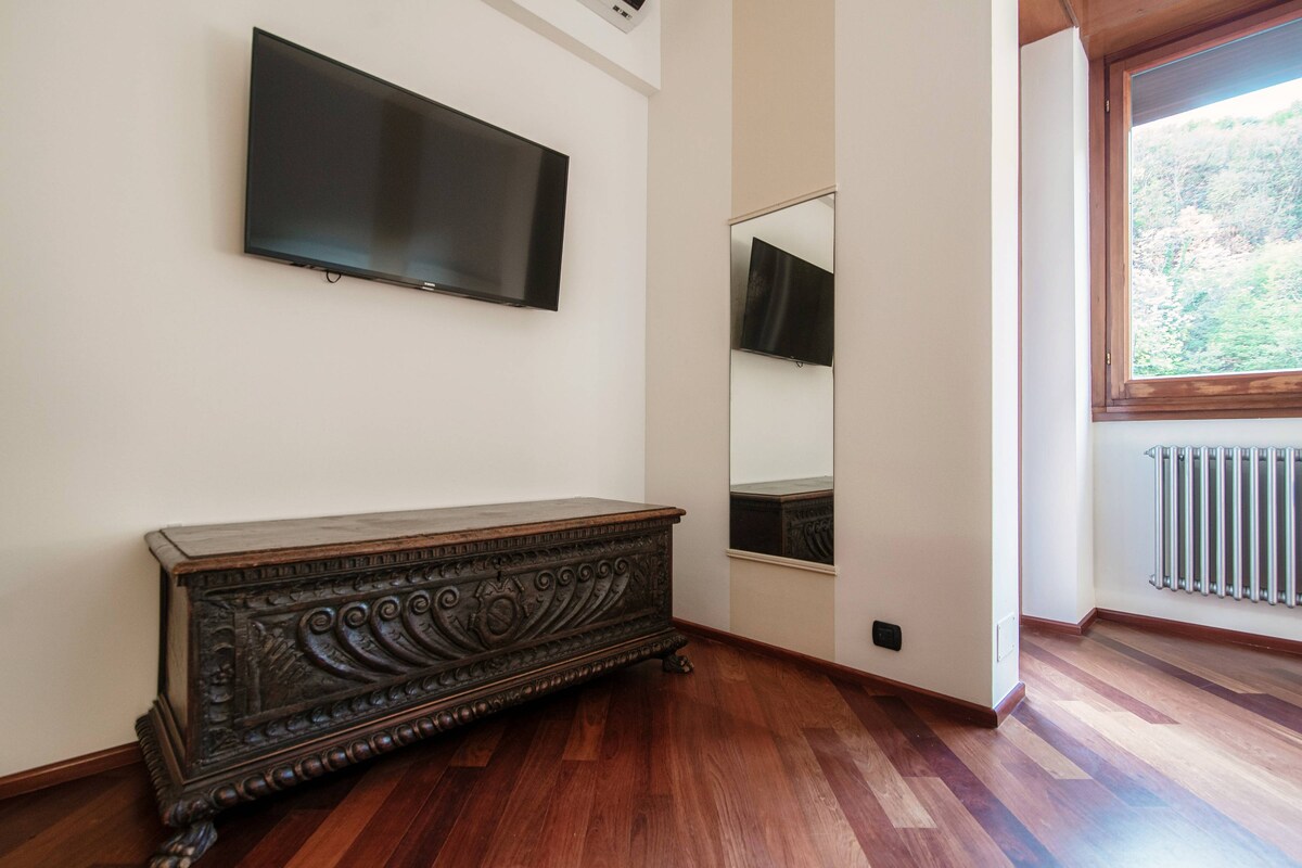 “Blue Mood” is a spacious and well-equipped apartment in a quiet residential area in the beautiful town of Cernobbio. Furnished in shades of blue and gold and featuring pieces of modern art, it masterfully combines the contemporary with the antique and elegant.