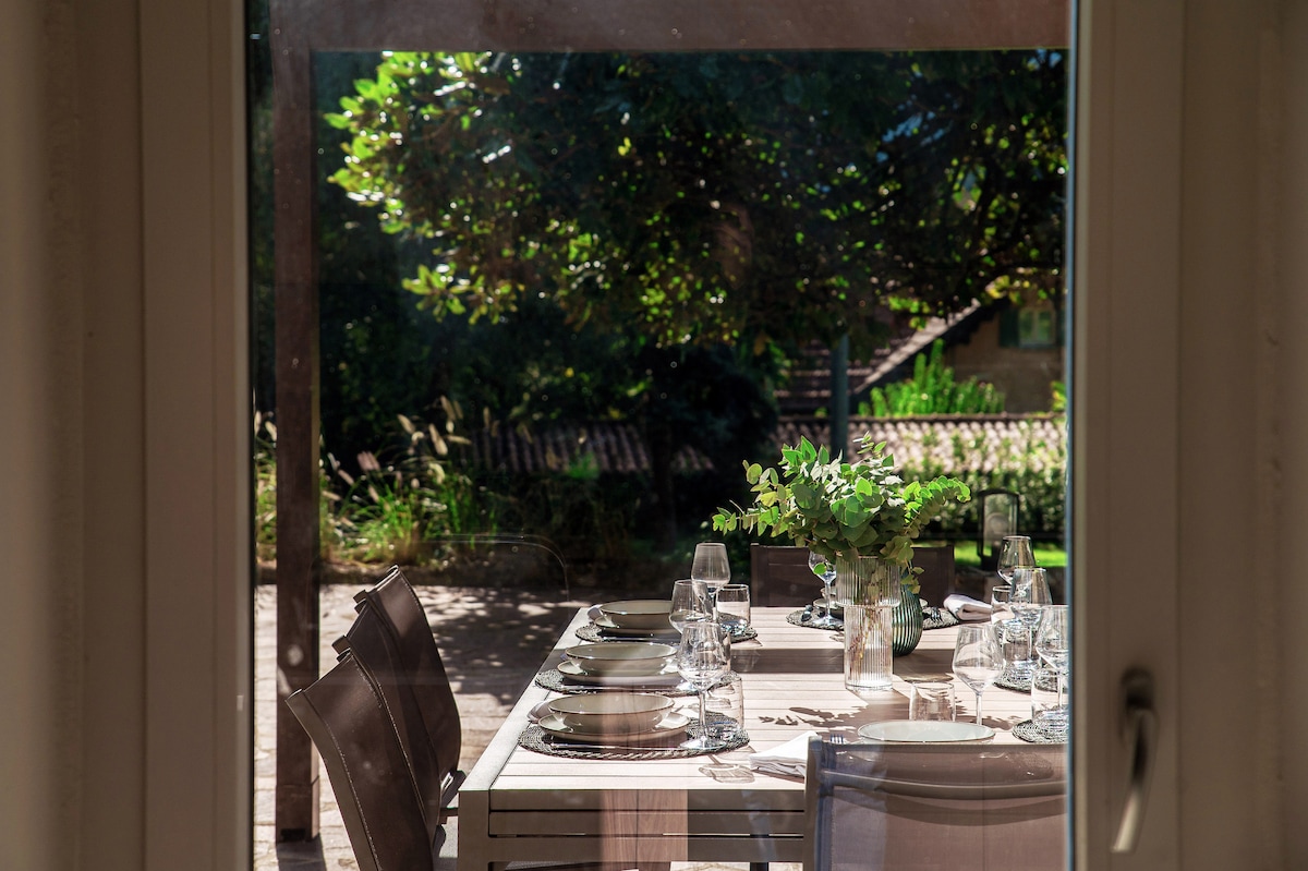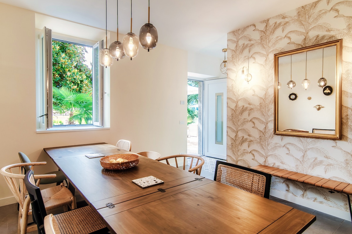 The property is spread over two floors and is equipped with all the necessary amenities for an unforgettable stay, including a magnificent private pool, a furnished garden, and a beautiful porch where you can spend fantastic days outdoors.The villa can accommodate up to 13 people. On the ground floor, there is a spacious dining room, a fully equipped kitchen, a cozy living area, a double bedroom, a bathroom, and a laundry room. On the upper floor, there are 4 bedrooms and two bathrooms, ensuring space and comfort for large groups or families. The villa is equipped with heating and air conditioning, making it perfect for any season. Outside, guests can enjoy a beautiful furnished porch, ideal for outdoor dining, along with a well-kept garden and a stunning private pool.