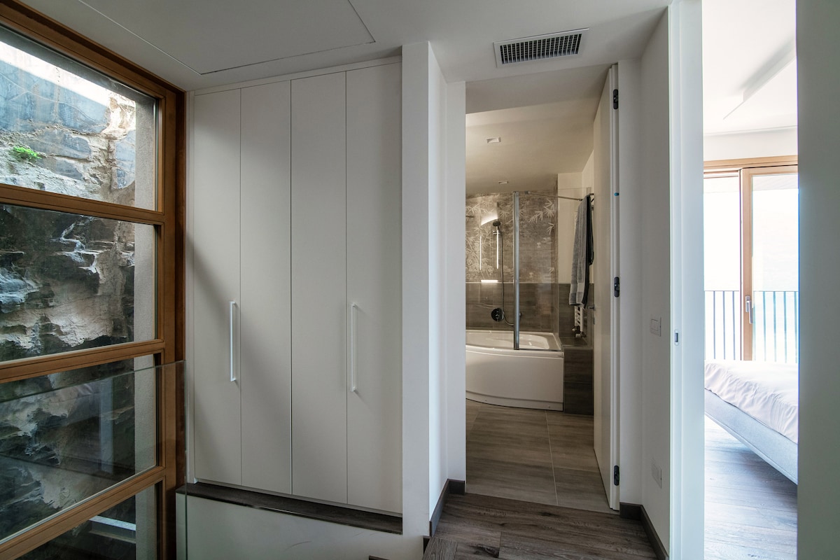 • Bedroom 2: Double size bed, Shared access to hallway bathroom, Shower/bathtub combo, Balcony