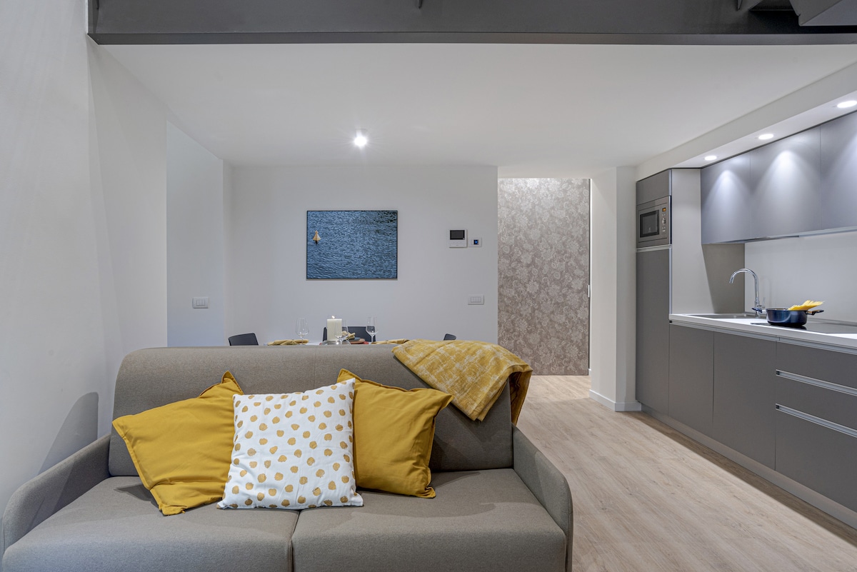 The apartment is modern and beautiful in a lovely area of Como. When you step out the door, there is so much to see and experience. The bed was very comfortable with four pillows. It is nice to have the bedroom separate, upstairs. The kitchen was nicely equipped. And there is a lovely little balcony to enjoy a drink outside. For those concerned with stairs, there is an elevator to the apartment on the first floor.