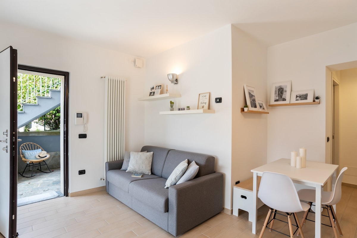 The apartment can host up to 5 people: there is a double bedroom with an additional single sofa bed (perfect for a child), and the double sofa bed in the air-conditioned living room is a great solution if you wish to wake up to an amazing view. The living room and kitchen create a wide open space, large and bright, provided with all the necessary tools to enjoy a delicious dinner... with a view! The terrace overlooking the lake and the Comacina island has an outdoor table and chairs for 4, as well as reclining chairs to relax in the sun 365 days per year. This apartment features a bathroom with a shower and washing machine.Guest access