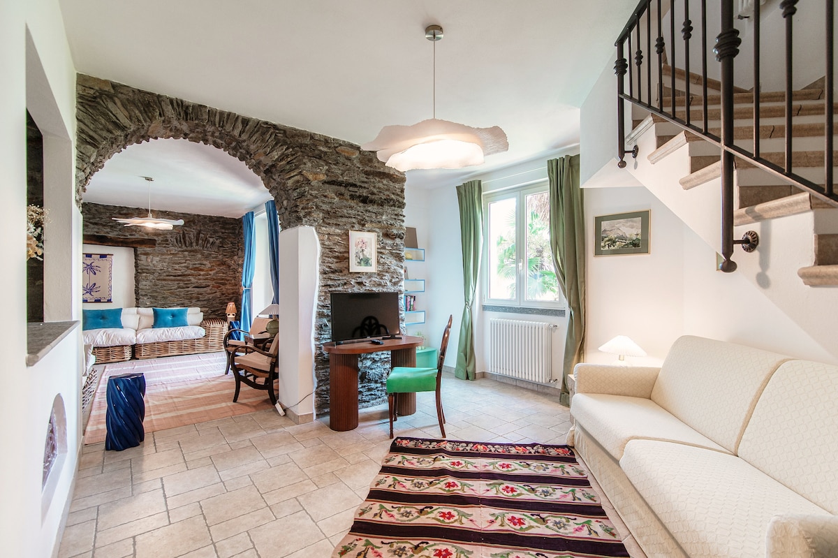 Once you have parked your car near the property, a few steps along a cobblestone path will lead you to the apartment. Inside the apartment, there is a flight of stairs to access from the ground floor to the first floor.There are free parking spaces near the property.