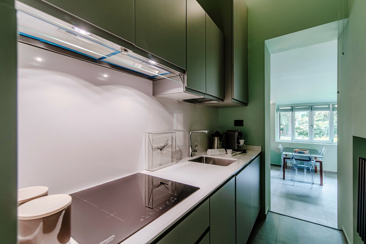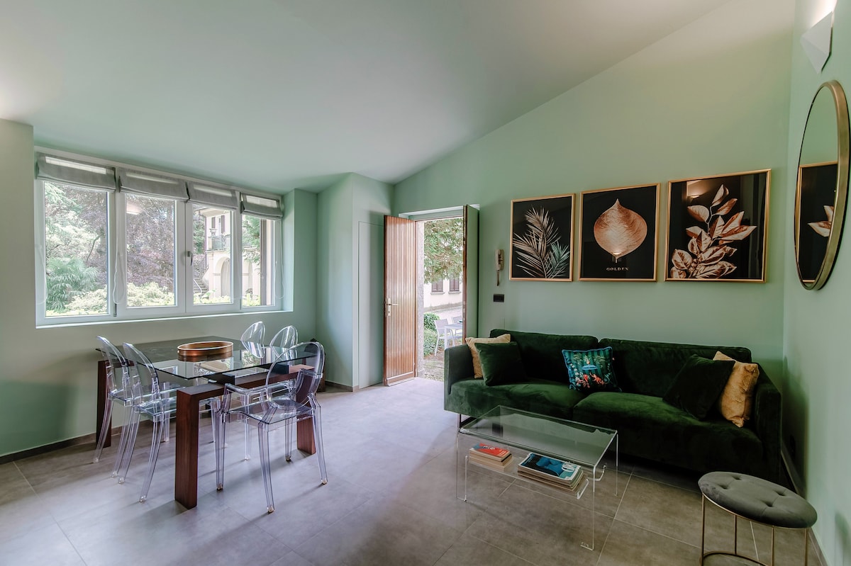 "L'Orangerie di Villa Mayer" is a two-story apartment that can accommodate up to 3 people, perfect for a couple or a small family. On the ground floor, you will find a living room, a modern, fully equipped kitchen, and one bedroom. On the first floor, there is another bedroom and a full bathroom. The apartment is equipped with Wi-Fi, TV, heating, and air conditioning.