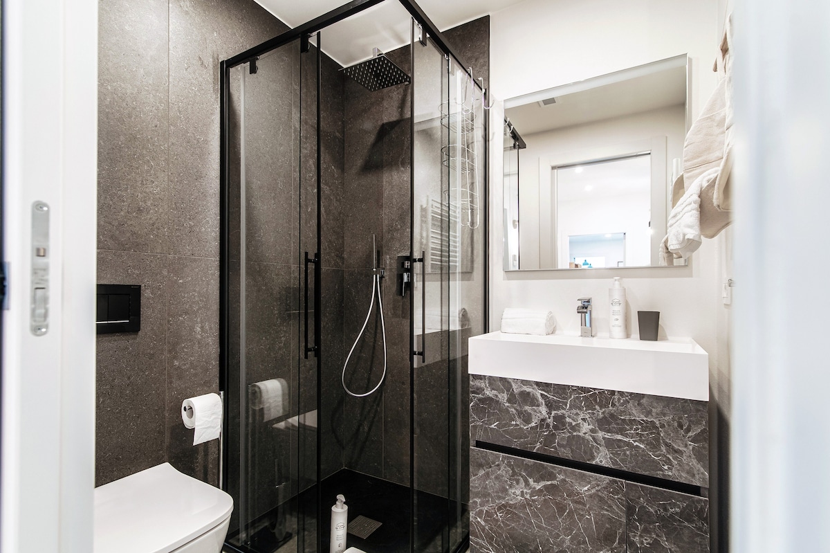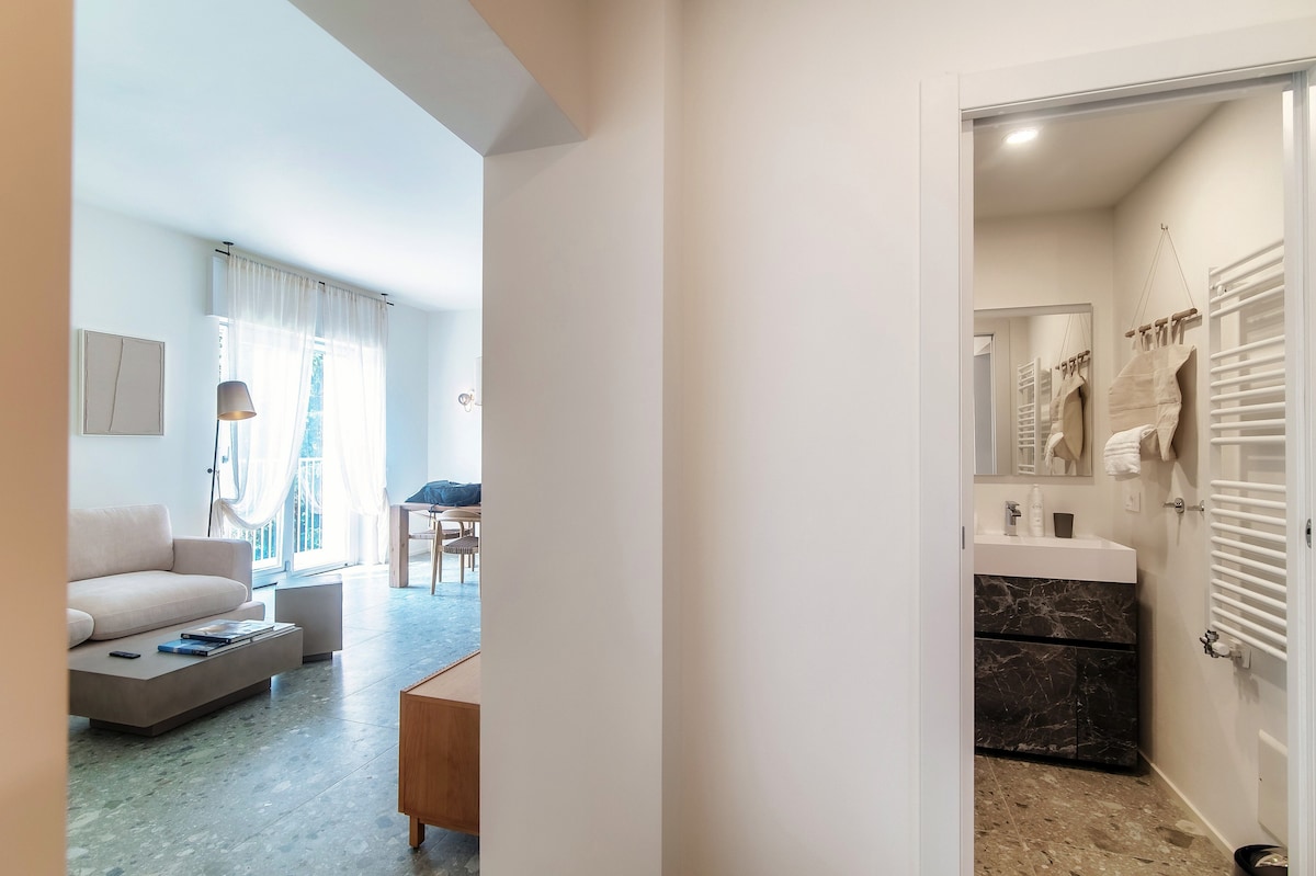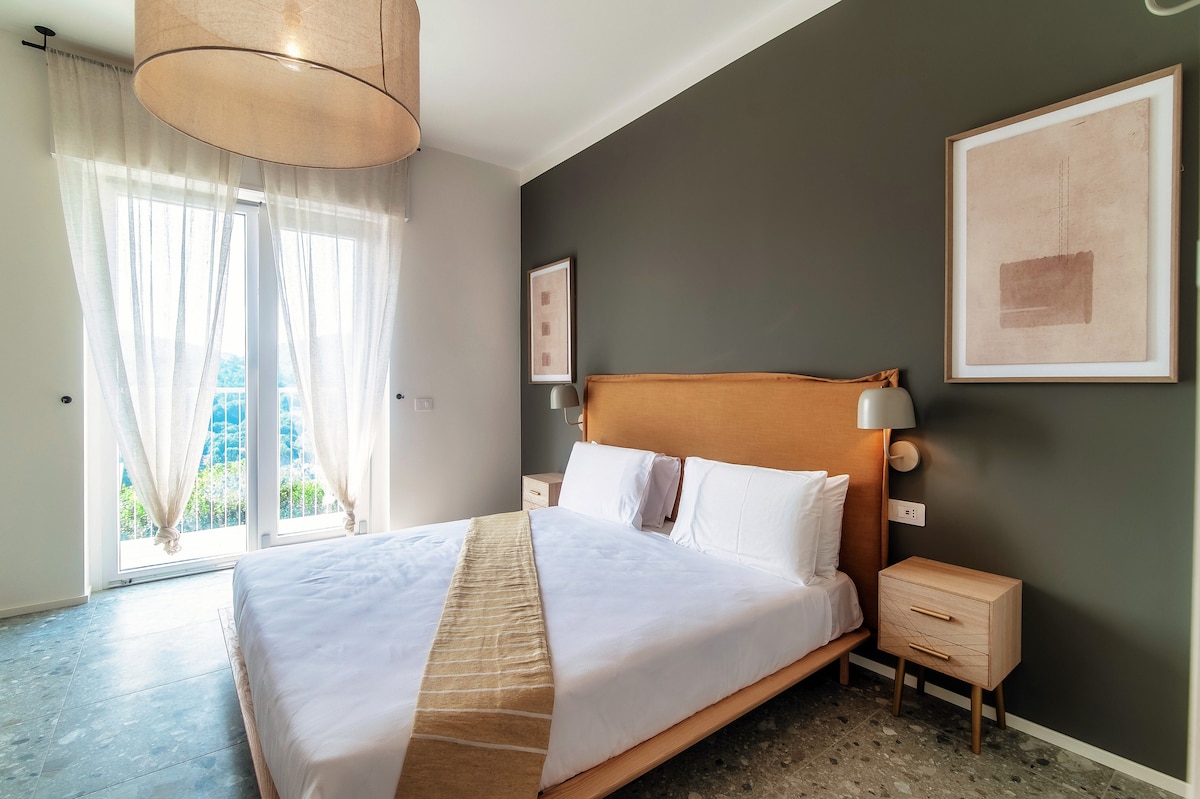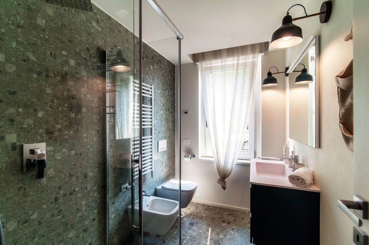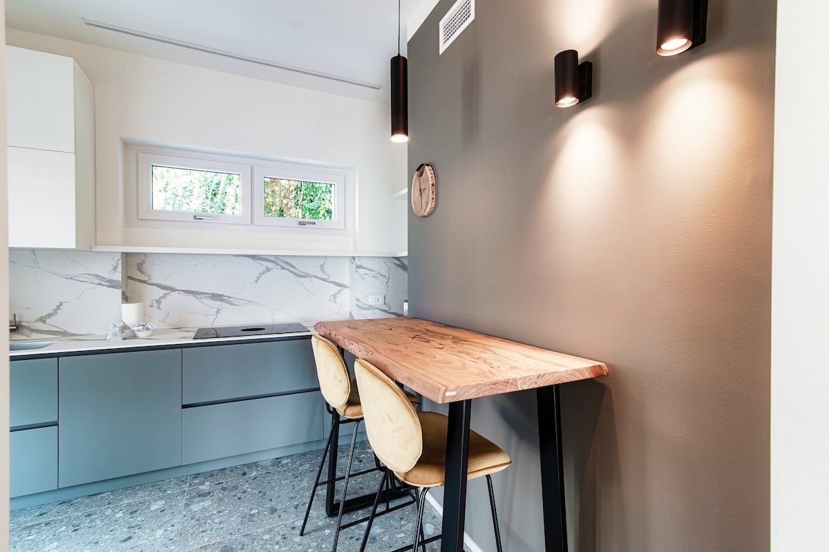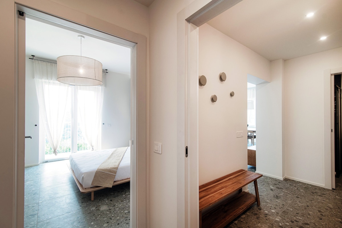 Contemporary and very well-equipped apartment. Beautiful materials and all the appliances you needed. Air conditioning in all rooms and shutters we found great. Even a storage room/basement with washing machine, vacuum cleaner, ironing board… we were only passing through here but we would have liked to stay longer! Own parking was also super but difficult to enter and exit due to location in a bend and very busy street. The view was beautiful. We did miss a table and chairs to really eat outside. Small table with three chairs was insufficient. Well located on a very busy road, you wouldn't expect it. Just too far from Como city center. You really do need a car. Also because the roads are so steep. But definitely recommended!