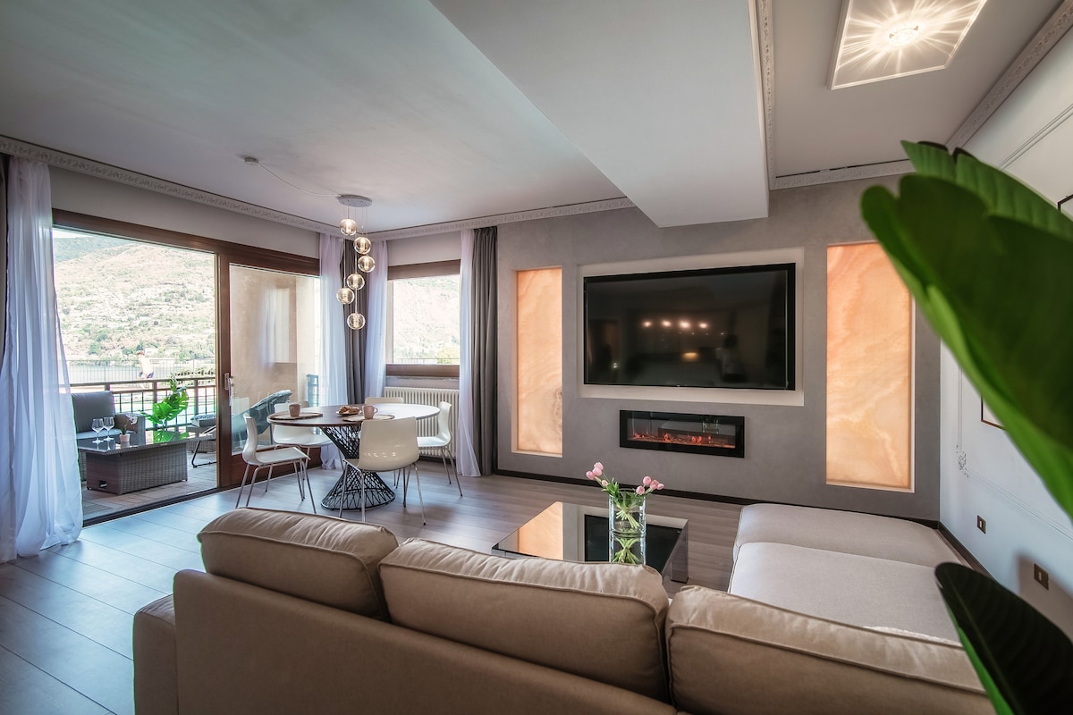 This apartment can host up to 4 guests. There is a double bedroom and a double sofa bed. The kitchen is well equipped for the preparation of 5-star meals which can be enjoyed on the terrace, admiring the surrounding mountains and the lake.Guest access