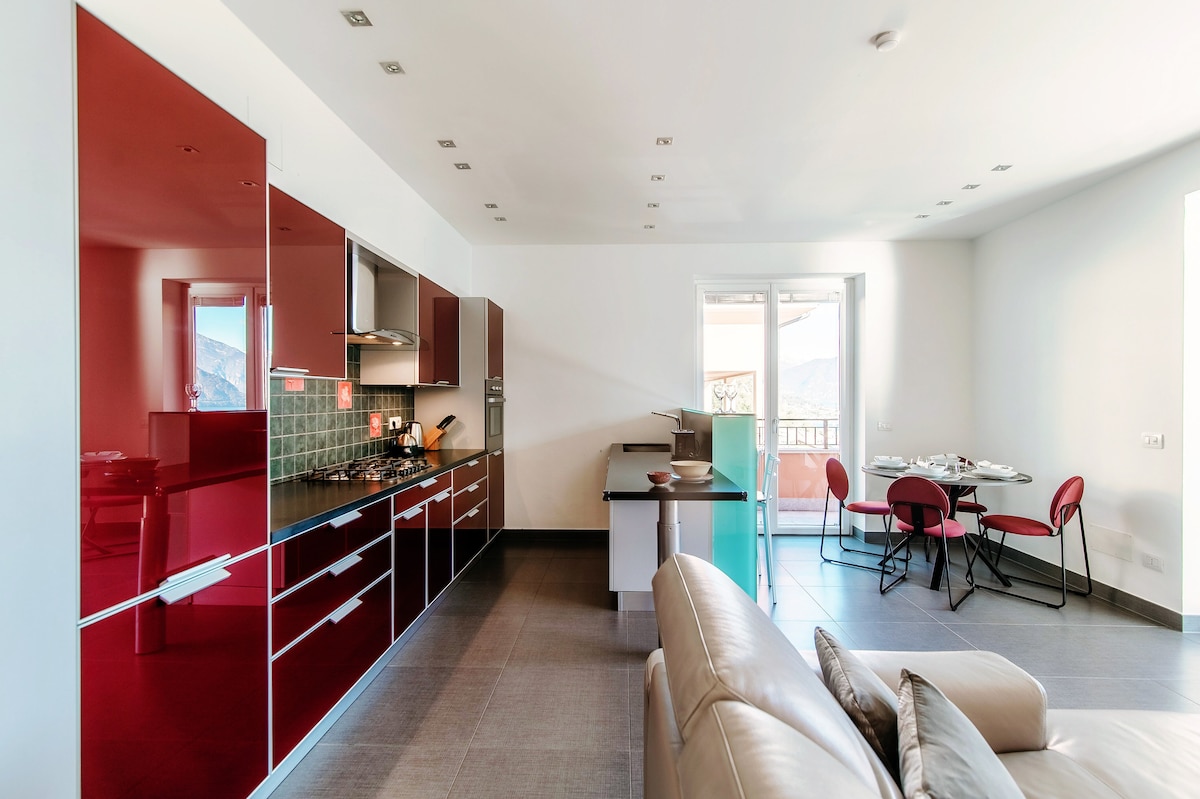 The view is simply stunning with a huge terrace overlooking the entire lake. Everything is clean, new and sparkling, and the kitchen allows cooking with all the utensils. The only problem is that there are no groceries in the kitchen except for coffee capsules and salt that we found in the cupboard. There is no tea, sugar, oil, milk, spices and not even paper towels so whoever wants to cook or even sweeten the coffee should buy everything. It is highly recommended that hosts invest in at least a minimum of things