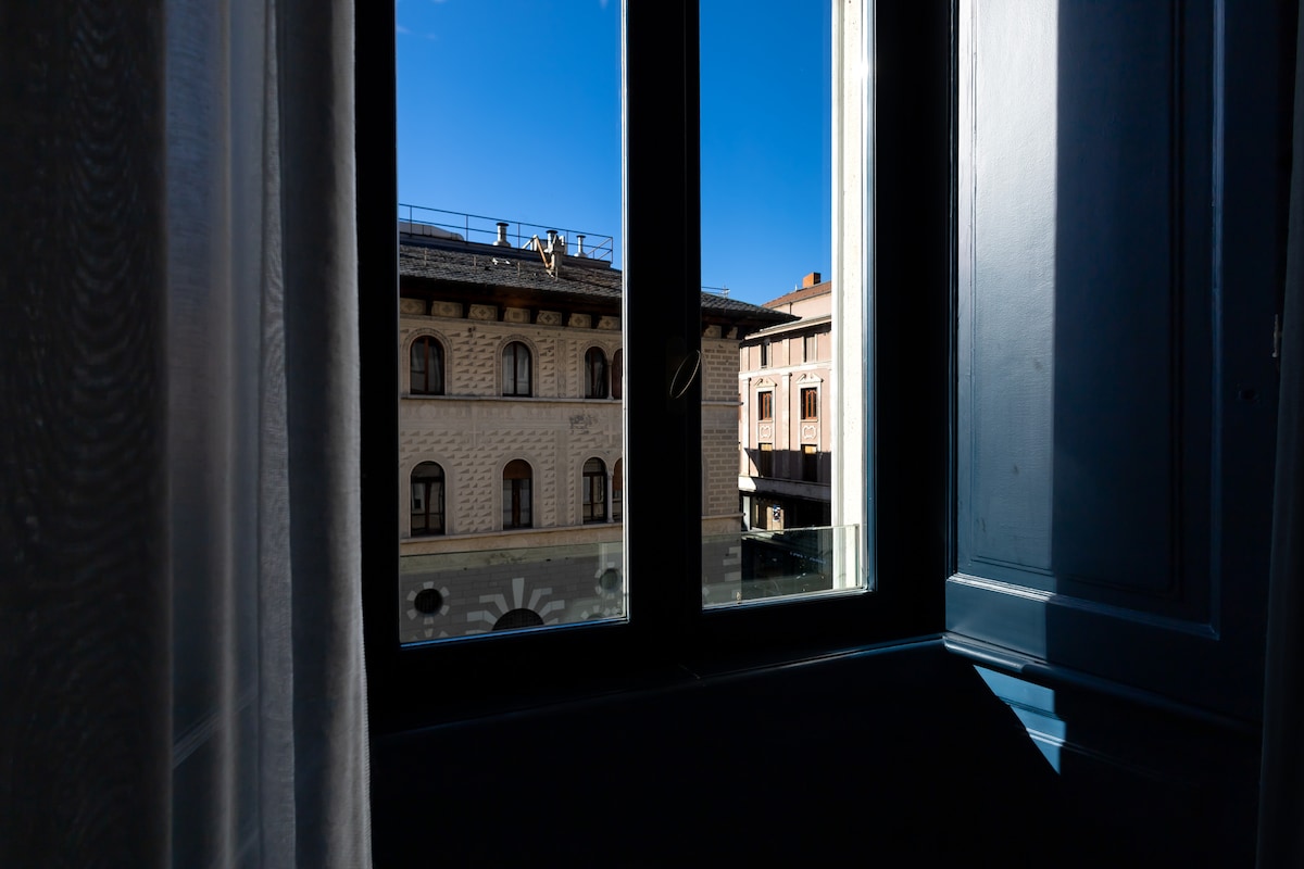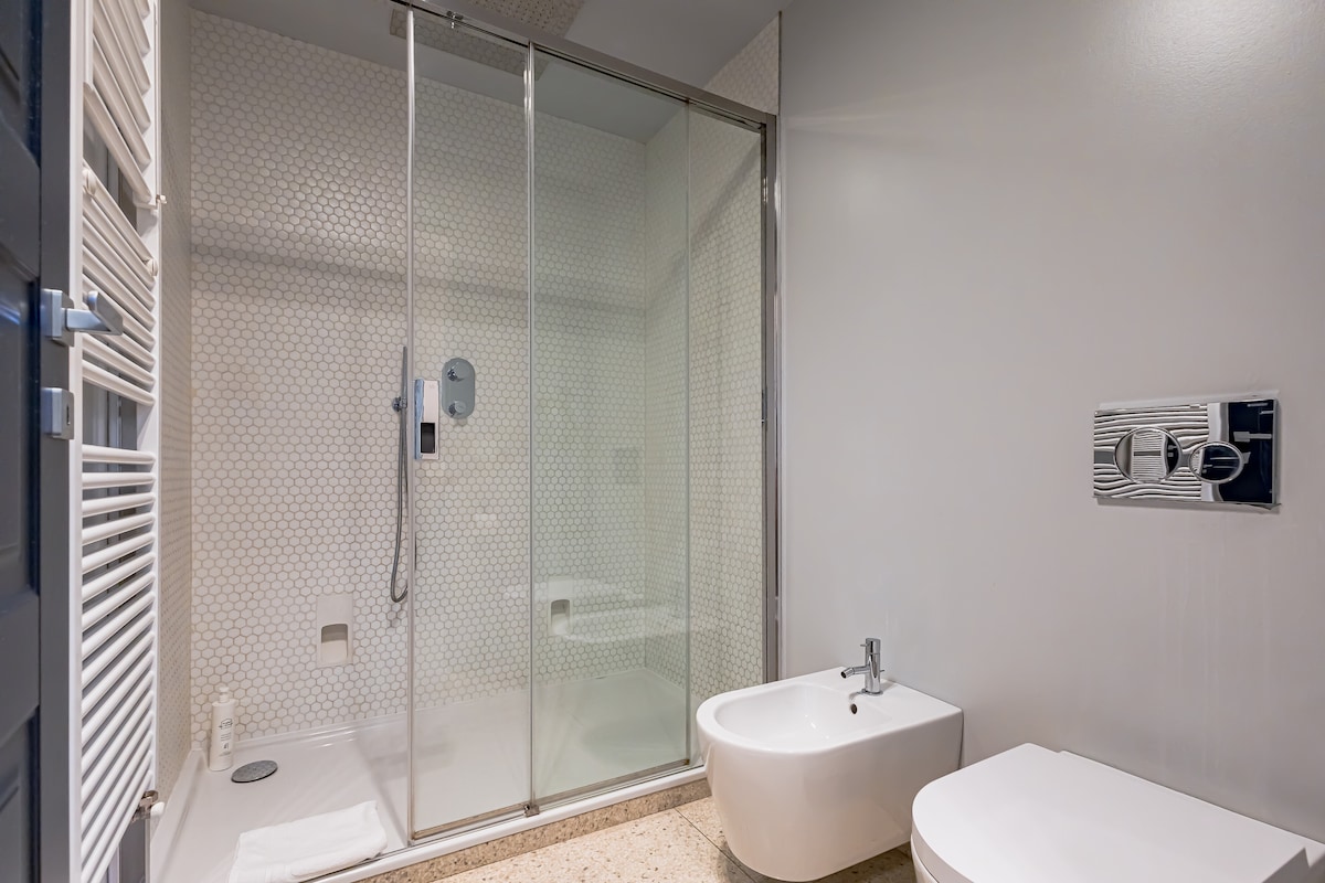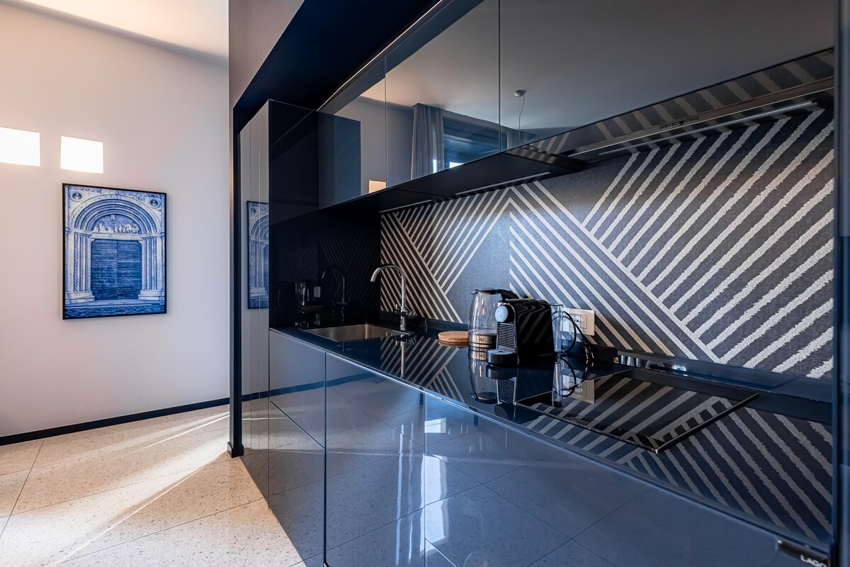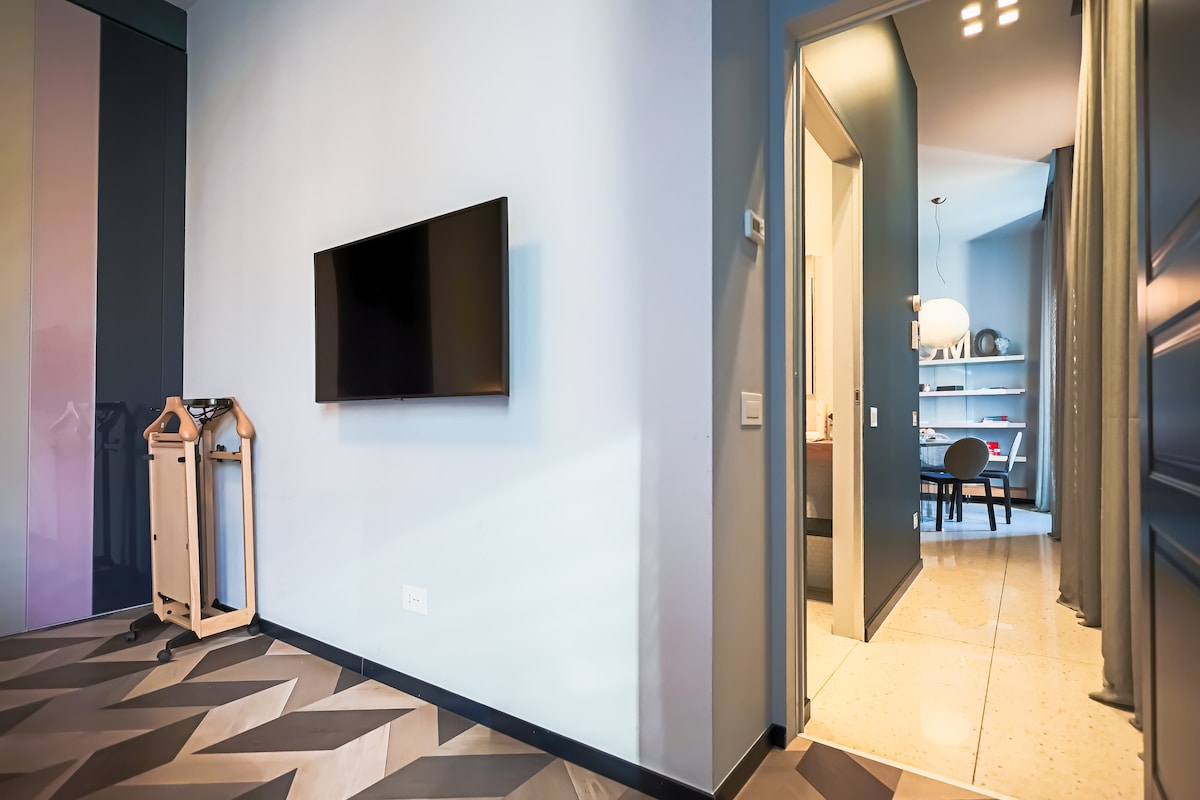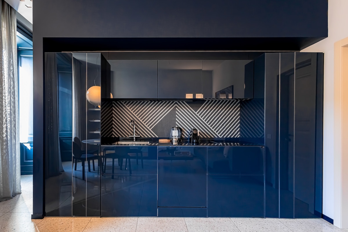 "Sky Suite" is a luxurious and modern apartment in the historic Visconti Palace. Located in the centre of Como, it is just a short walk from the cathedral and the lakeside promenade. Finely decorated in shades of blue, this apartment is designed to provide you with the utmost comfort and functionality.