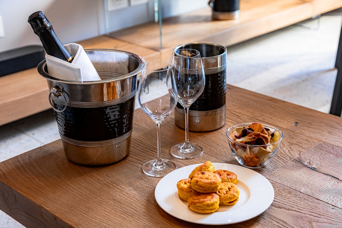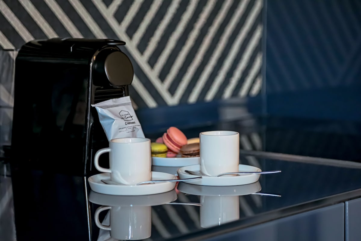 This apartment, equipped with air conditioning, can accommodate up to two people. It features an elegant double bedroom, a living area including a fully equipped kitchen - induction hob, dishwasher, oven, etc., and a living room with a sofa and wall-mounted smart TV, as well as a comfortable bathroom with a chromotherapy shower. Additionally, you can take advantage of a convenient laundry room - shared with another suite, equipped with a washing machine and dryer.Other things to note