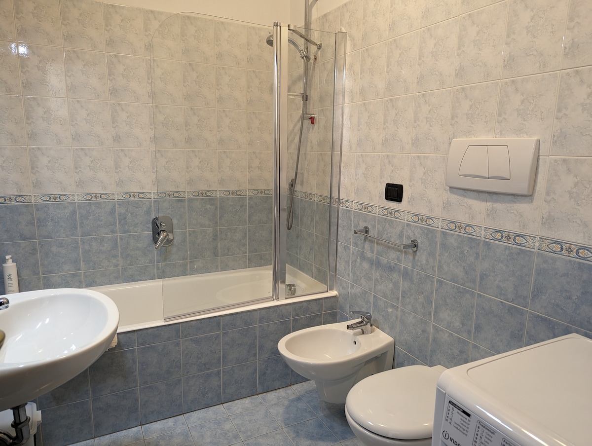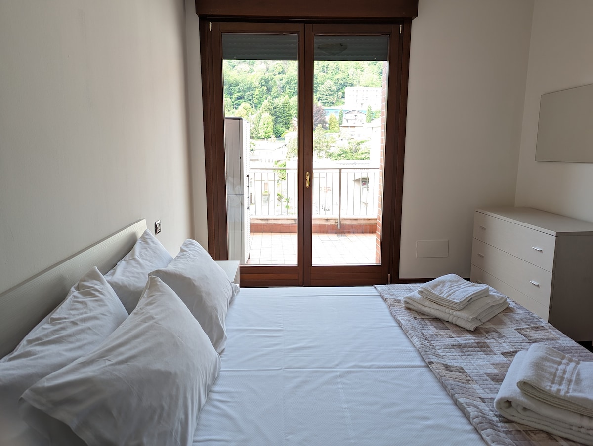 very nice apartment, ideal for a family of 4. Secure basement garage. Well located for visiting Lake Como. Moderately nice neighborhood because it is off-center but we chose it to be able to park easily. supermarket just opposite which is convenient. Not the best view from the terrace.
