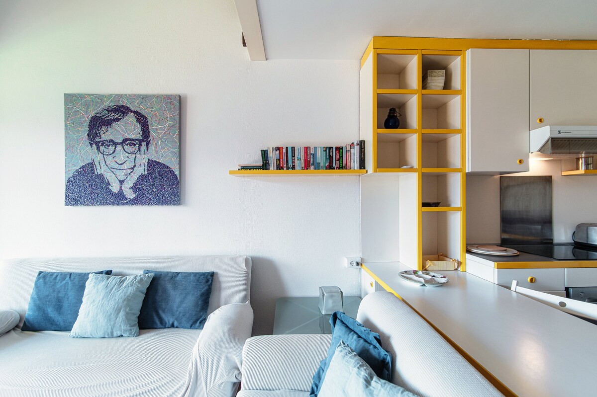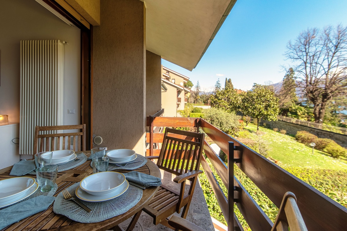 Sunlight consists of an entrance that opens onto a bright living area with a kitchenette, equipped with all the necessary appliances for cooking. The living area overlooks a beautiful terrace with a lake view, furnished for enjoying outdoor evenings surrounded by greenery. The bathroom is complete with a shower and washing machine, next to which is a staircase leading to the loft, used as a double bedroom. The apartment can accommodate 2 people and is equipped with heating, air conditioning, TV, and WiFi.Guest access