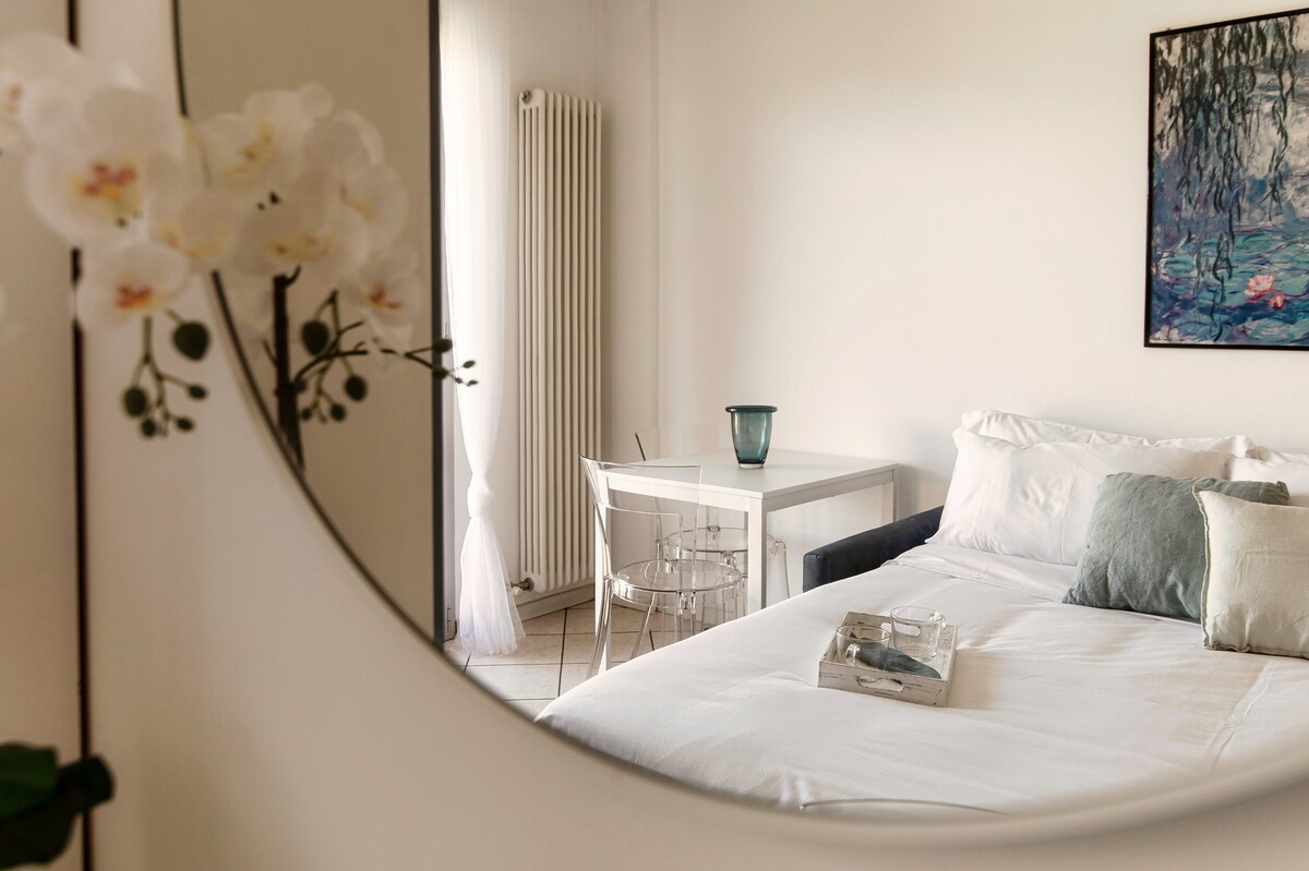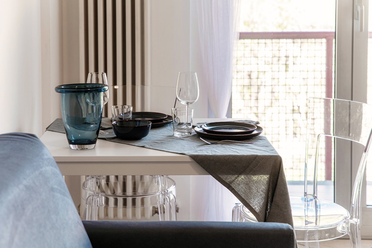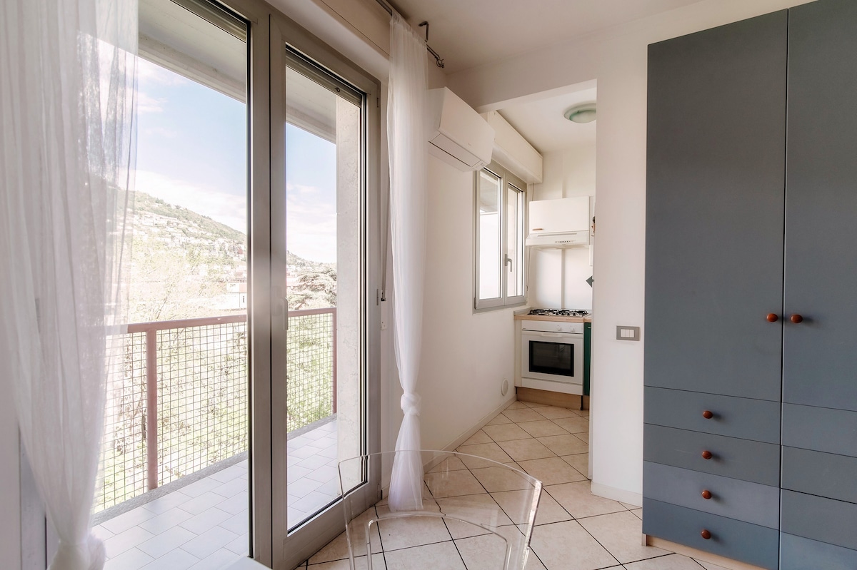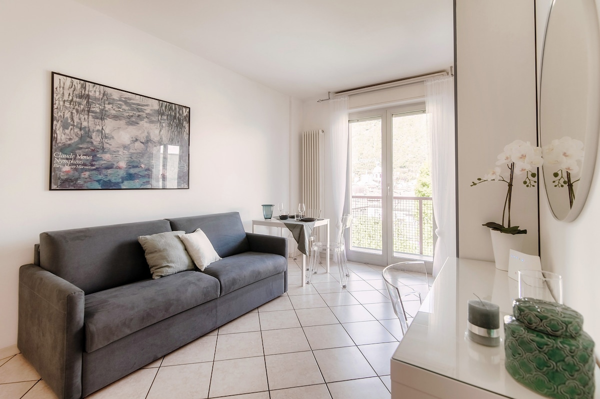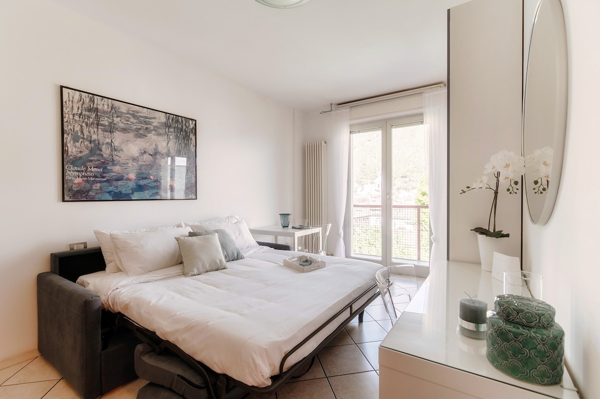 We spent 5 days in Como. The apartment is small but sufficient for 2 and rather well located (within a 10-minute walk from the lake). The bed, once unfolded, takes up a lot of space and the mattress was not super comfortable. The superb view from the balcony of the basilica makes up for it! The kitchen equipment is sufficient but basic. It should be noted that the one-way street is quite noisy. Even if the instructions were clear, receiving the keys requires a little organisation. Finally, air conditioning in the middle of August was welcome!