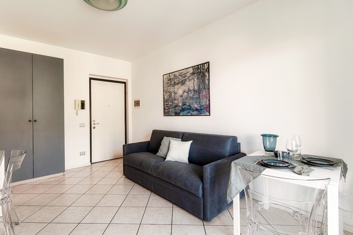 Tiny Blue has a single living-night area, furnished with a comfortable sofa that can be transformed into a double bed. The kitchenette is fully equipped with everything you need to prepare your favorite dishes. The studio is equipped with independent heating, air conditioning and free Wi-Fi. The full bathroom with shower and washing machine in the bathroom add comfort and convenience to your stay. It can comfortably accommodate up to 2 people.Guest access