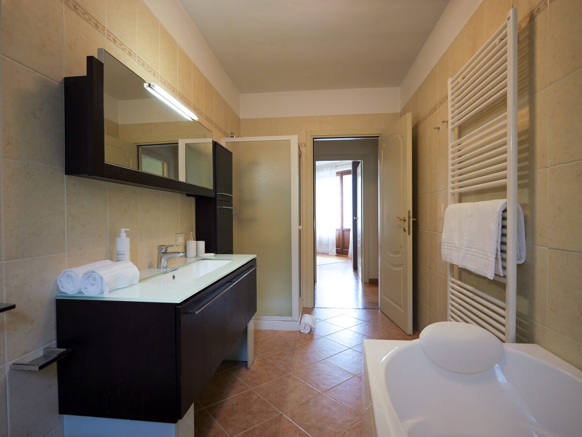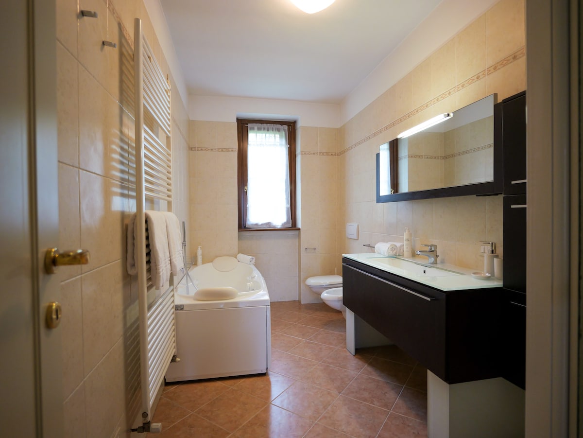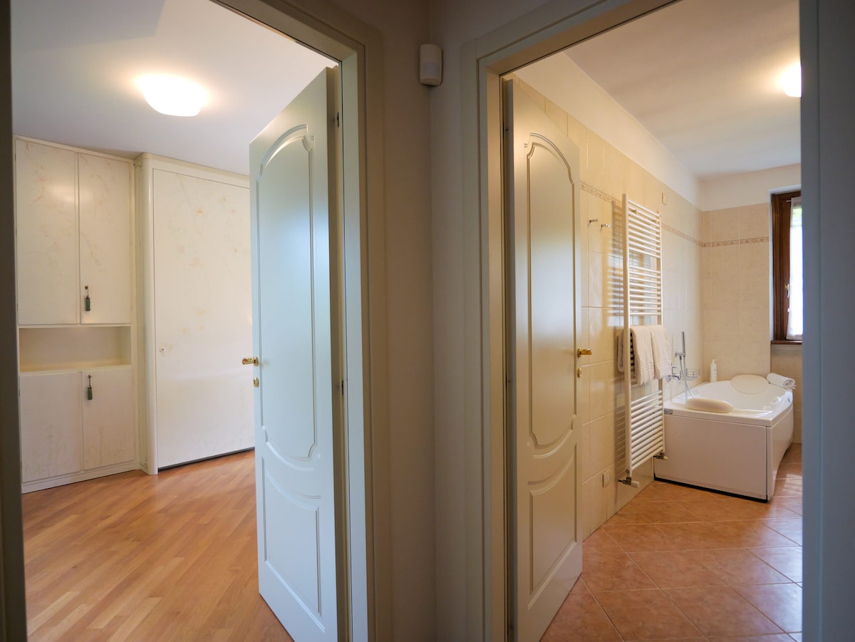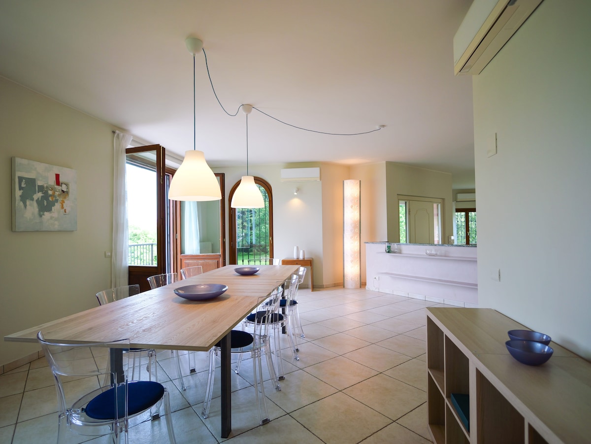 The villa is arranged over 3 floors and has more than enough space to comfortably accommodate up to 10 people. There are 4 bedrooms (3 doubles and 1 with 2 single beds) and 4 bathrooms (2 with showers, 1 with a bathtub and shower, 1 with a bathtub); there is a beautiful living area, an equipped kitchen that opens directly onto the furnished garden, and a tavern with a comfortable double sofa bed. You can enjoy air conditioning, free Wi-Fi, and a separate laundry/ironing area.Guest access