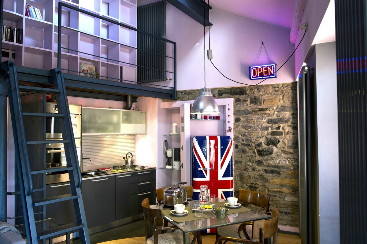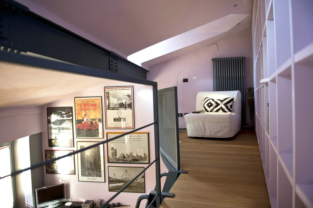In the mezzanine above, there is a single fold-down bed for an extra guest.