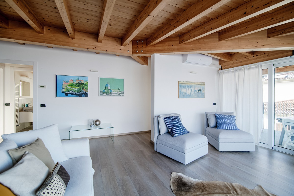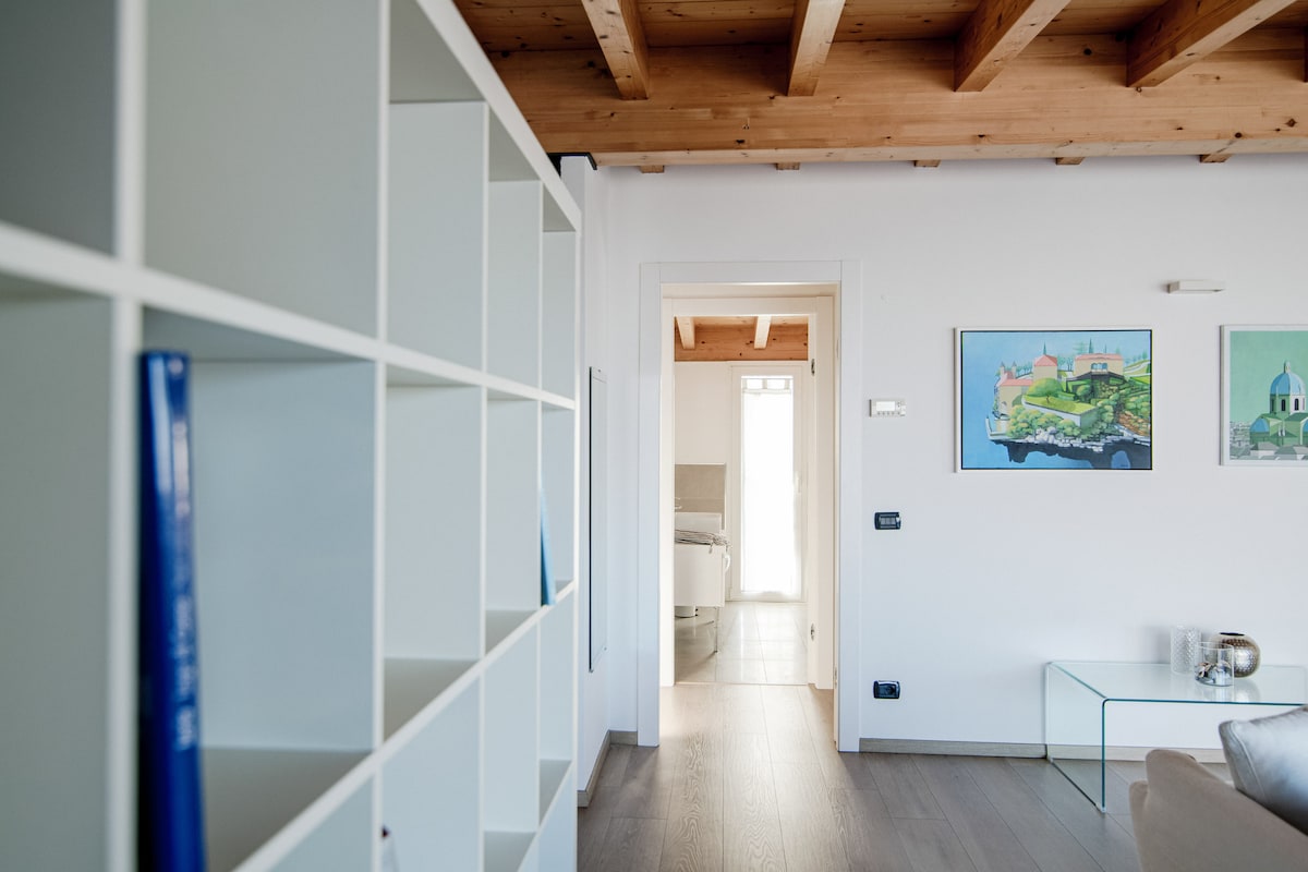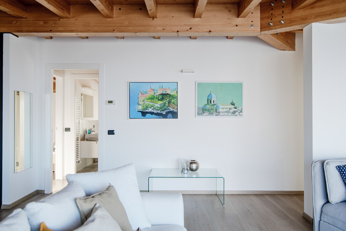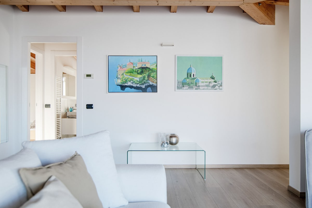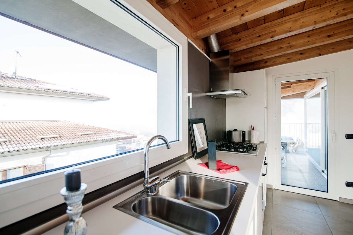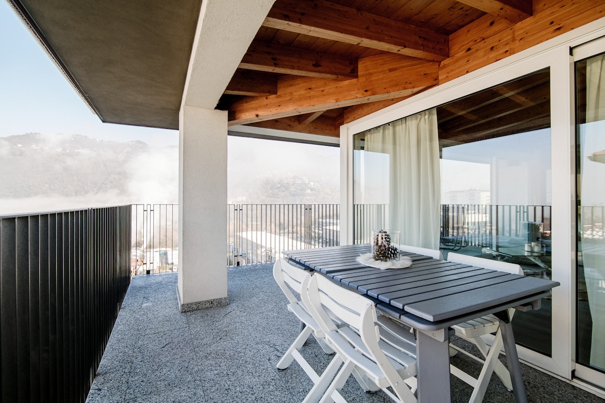 A bright and spacious penthouse just outside Como city, with a large terrace and splendid views. An ideal location to observe the movement and enthusiasm of the city while maintaining your privacy!