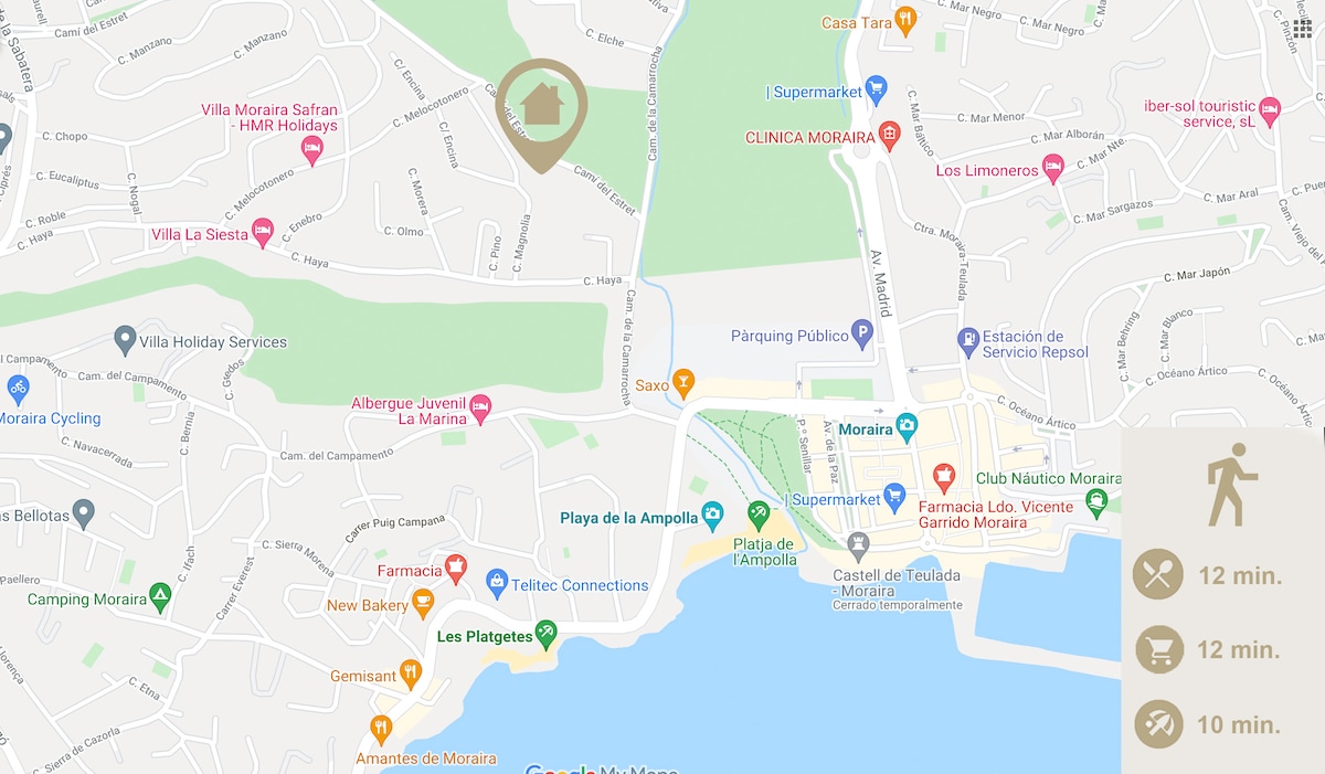- nearest beach: L'Ampolla - Moraira (within 1000 meters of the villa)