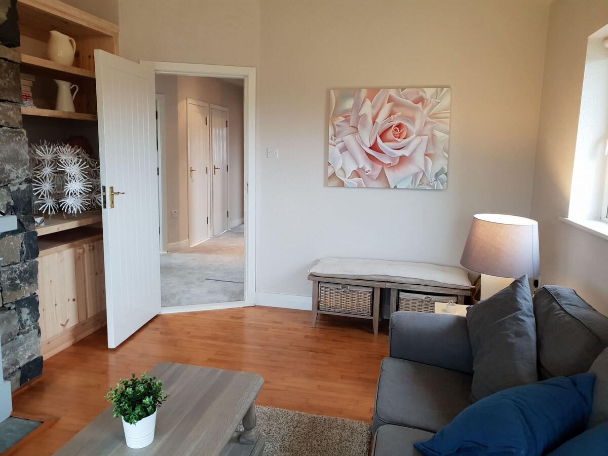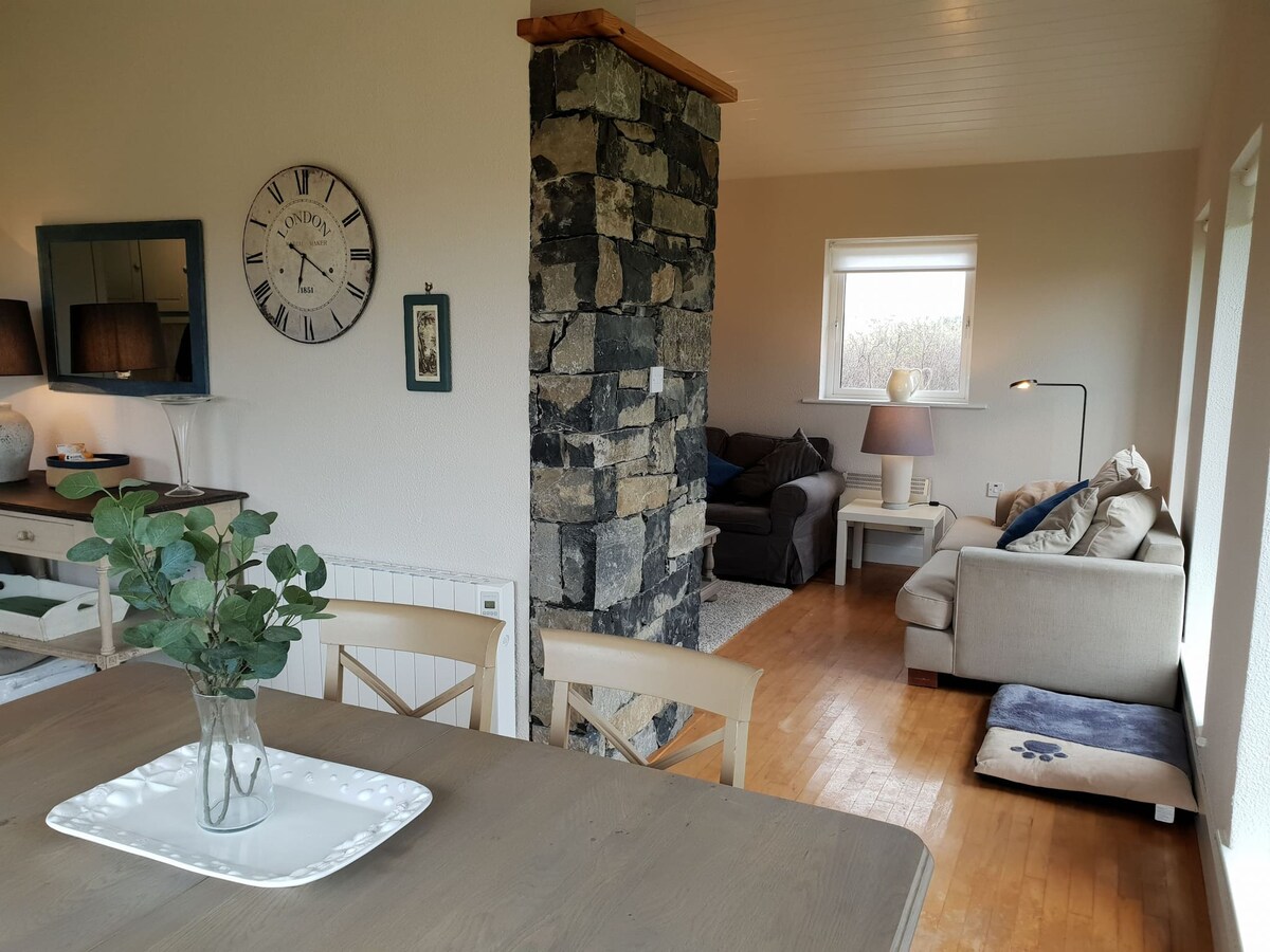 Upon entering the semi-open plan reception, kitchen & dining area you are struck by the ambient natural light beaming from the large windows and patio doors. The reception room/dining & kitchen are separated by a large stone-fronted chimney breast housing a wood-burning stove making the cottage warm and cosy to enjoy after a fun-filled day touring all Connemara has to offer.