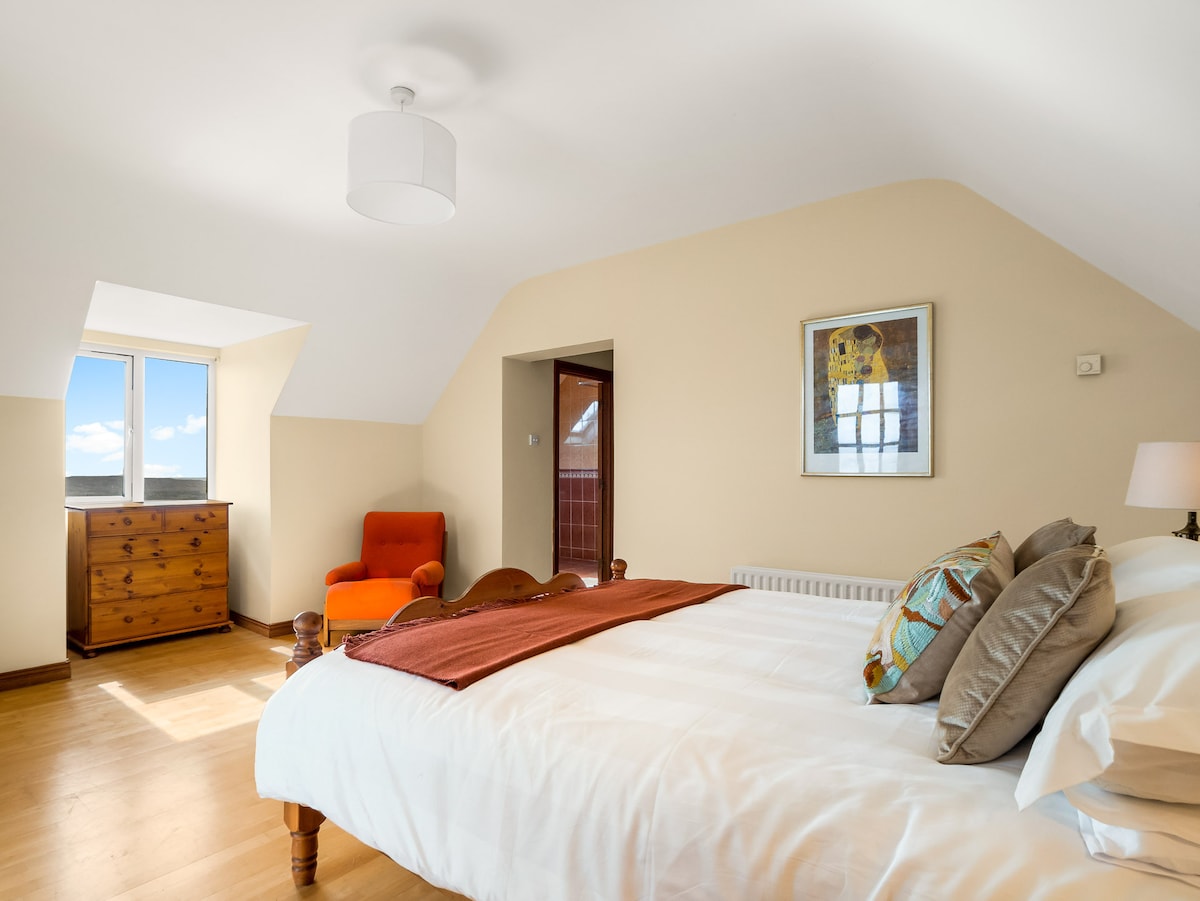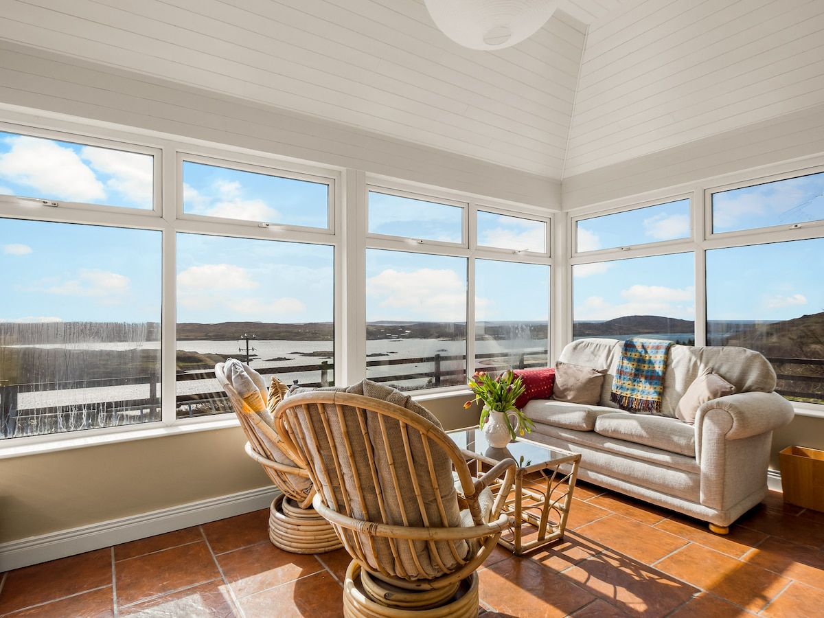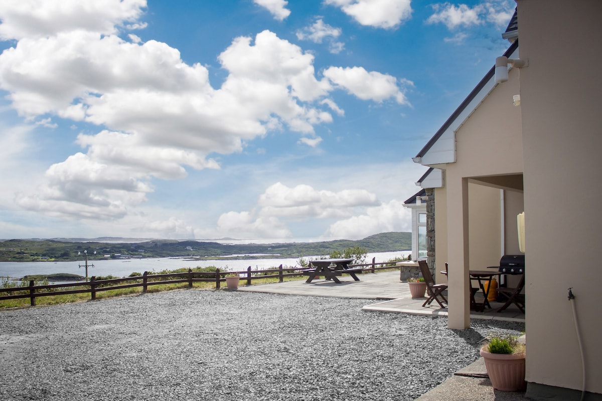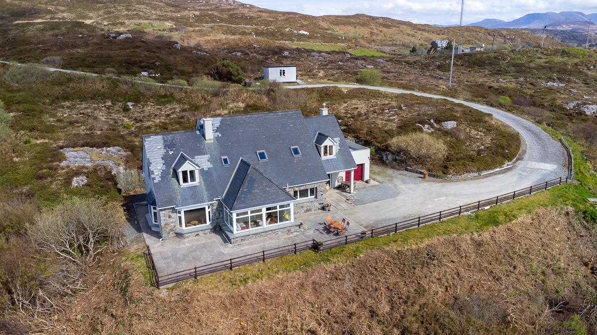 Perched on the scenic Sky Road and overlooking the ruggedly beautiful Connemara landscape, Sky Road Lodge offers an exceptional retreat for those who appreciate the finer things in life. This grand 260 m² house comfortably accommodates up to 7 guests, featuring panoramic views that sweep across the sea to the distant mountains. Here, elegance meets tranquility, inviting you to indulge in the luxury of space and the peace of natural beauty.
