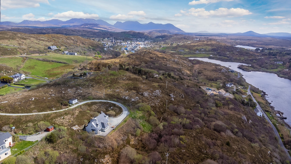 Perched on the scenic Sky Road and overlooking the ruggedly beautiful Connemara landscape, Sky Road Lodge offers an exceptional retreat for those who appreciate the finer things in life. This grand 260 m² house comfortably accommodates up to 7 guests, featuring panoramic views that sweep across the sea to the distant mountains.
