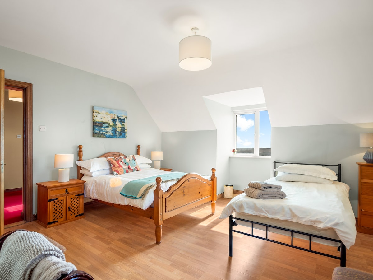 Triple Room (Ensuite): A versatile bedroom featuring one double bed and one single bed, equipped with an ensuite shower.