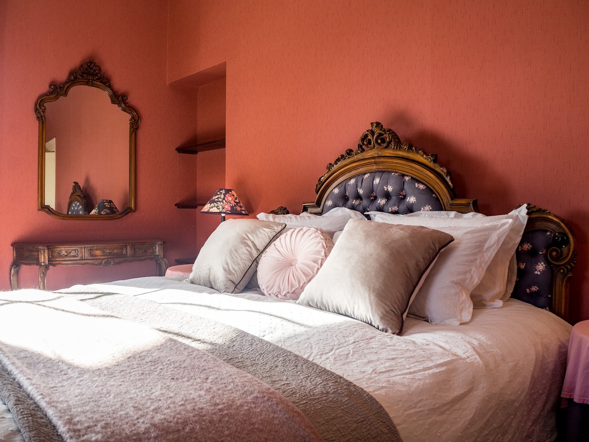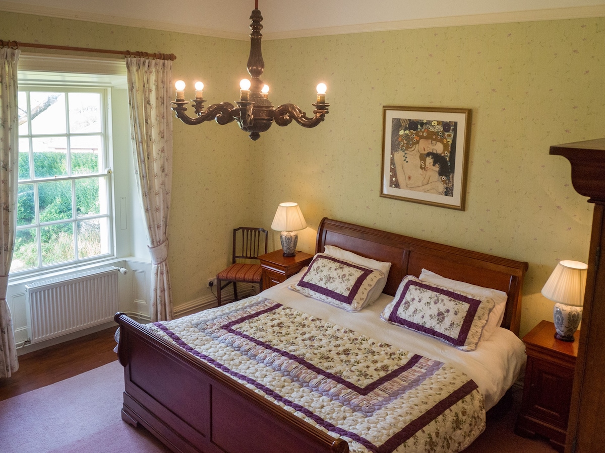 Bedroom 2: King-size bed, wardrobe, dressing table and free-standing mirror. High ceilings, 2 windows with beautiful views overlooking the gardens and allowing ample natural light.