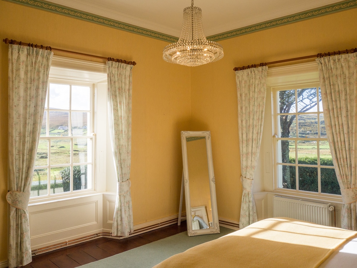 Kill House is an elegant historic property located in an area of outstanding scenic beauty close to the shores of the Atlantic sea at Kingstown Bay, near Clifden, the renowned Capital of Connemara in County Galway.Kill House is situated only moments from one of the most famous tourist attractions in Ireland ‘The Sky Road’ with its majestic scenery of the rugged Coastline and spectacular views of the Atlantic Ocean where we can organise a private boat trip to visit islands such as Inishturbot, High Island and Omey Island. You can visit Cleggan Village where you can enjoy some fabulous seafood, from here take a boat trip to Inishbofin with its beautiful beaches, hire a bike or just relax. Only 5 minutes from the house there is a Coral beach where you can enjoy a swim, go snorkelling or take a walk along the coast. You can go surfing, mountain climbing, horse riding, enjoy walking tours, visit Kylemore Abbey and the Connemara National Park (Diamond Hill), take a boat trip on a tranquil lake, have a picnic on the white sandy beaches, play an 18 hole golf course, go deep sea fishing, fly fishing this is to name but a few of the wonderful activities in the area. Clifden is only a 5-minute drive away.