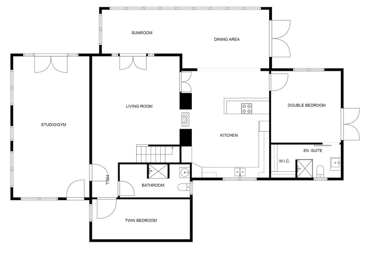 • Kitchen: Modern and fully equipped, open to dining area.