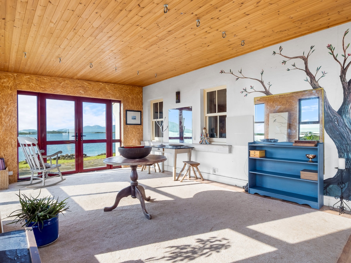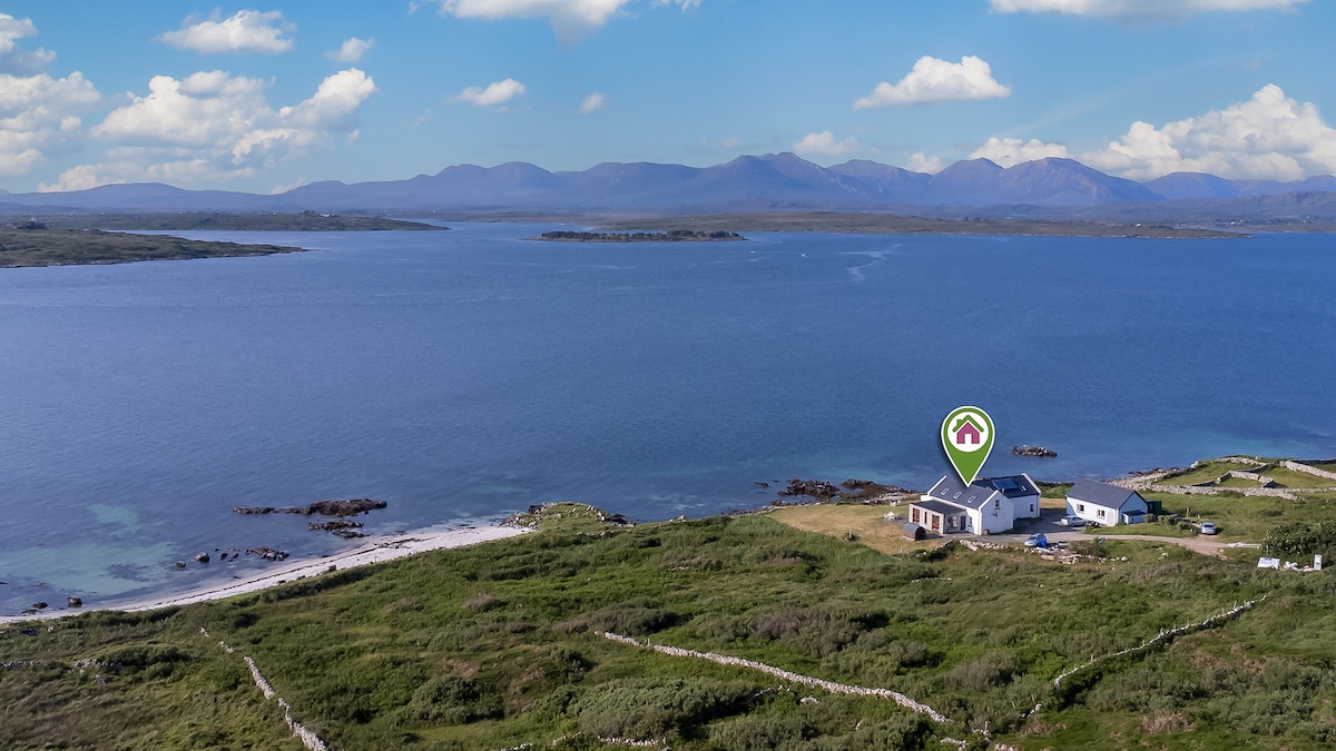 Nestled along the picturesque shores of Connemara, Suantraí Cottage offers a serene escape for up to 8 guests, blending the rustic charm of the countryside with the comforts of modern living. This beautiful cottage serves as a tranquil retreat where the sea meets the sky, framing stunning vistas and a peaceful ambiance that captivates and rejuvenates.