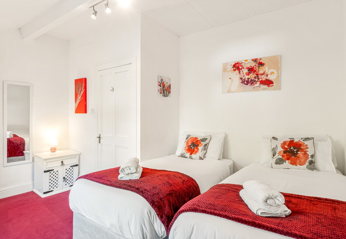 2 bedrooms 1 Double room and one twin room. Both are carpeted, double bedroom overlooking Main Street and the twin bedroom is overlooking the rear.