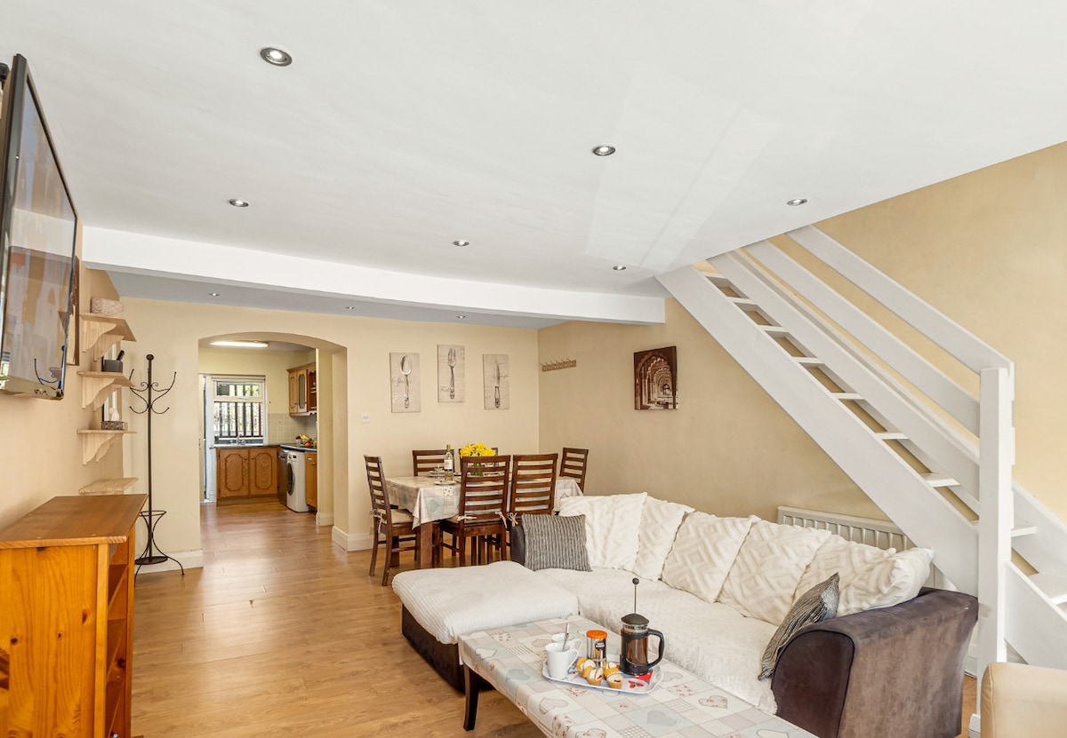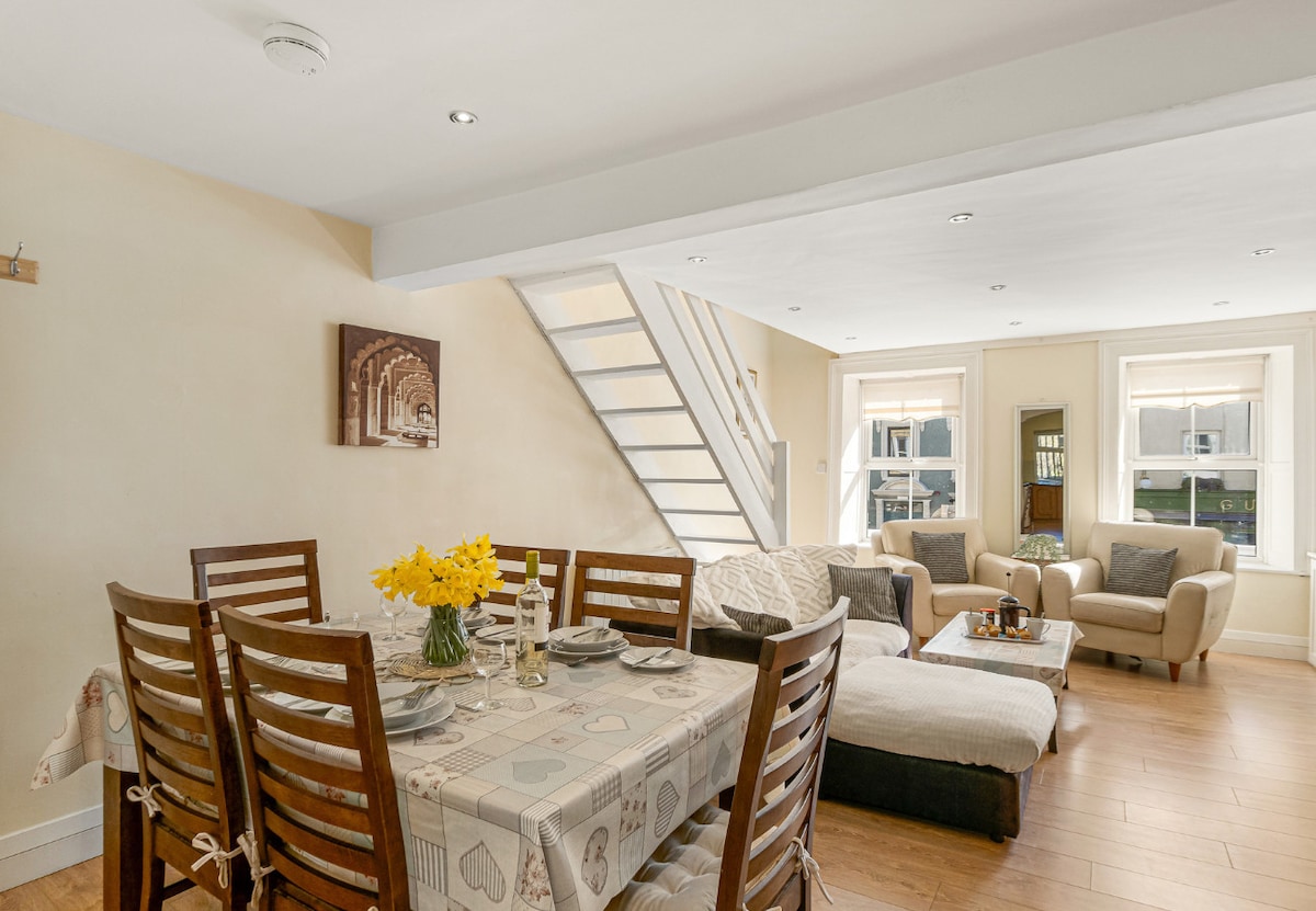 From the entrance, you are led into a large open-plan kitchen, dining and sitting room area. This room is bright and airy.