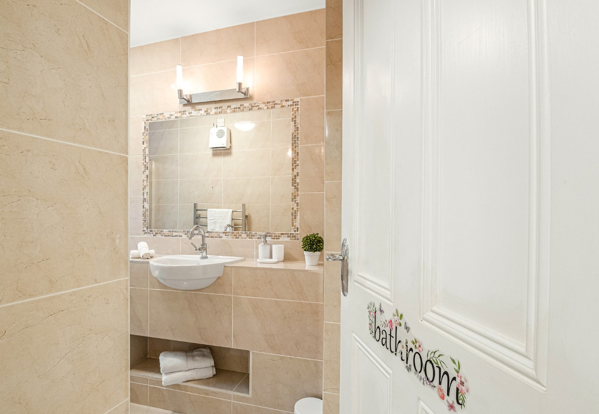 From the kitchen area is a door leading to a luxurious shower room with a large power shower, sink unit & Wc.