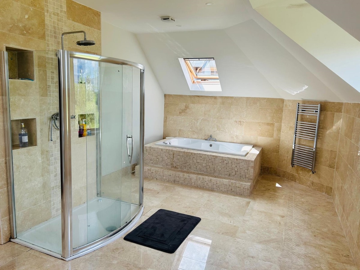 suite with extra-large rainfall shower and extra-large Jacuzzi bath. This