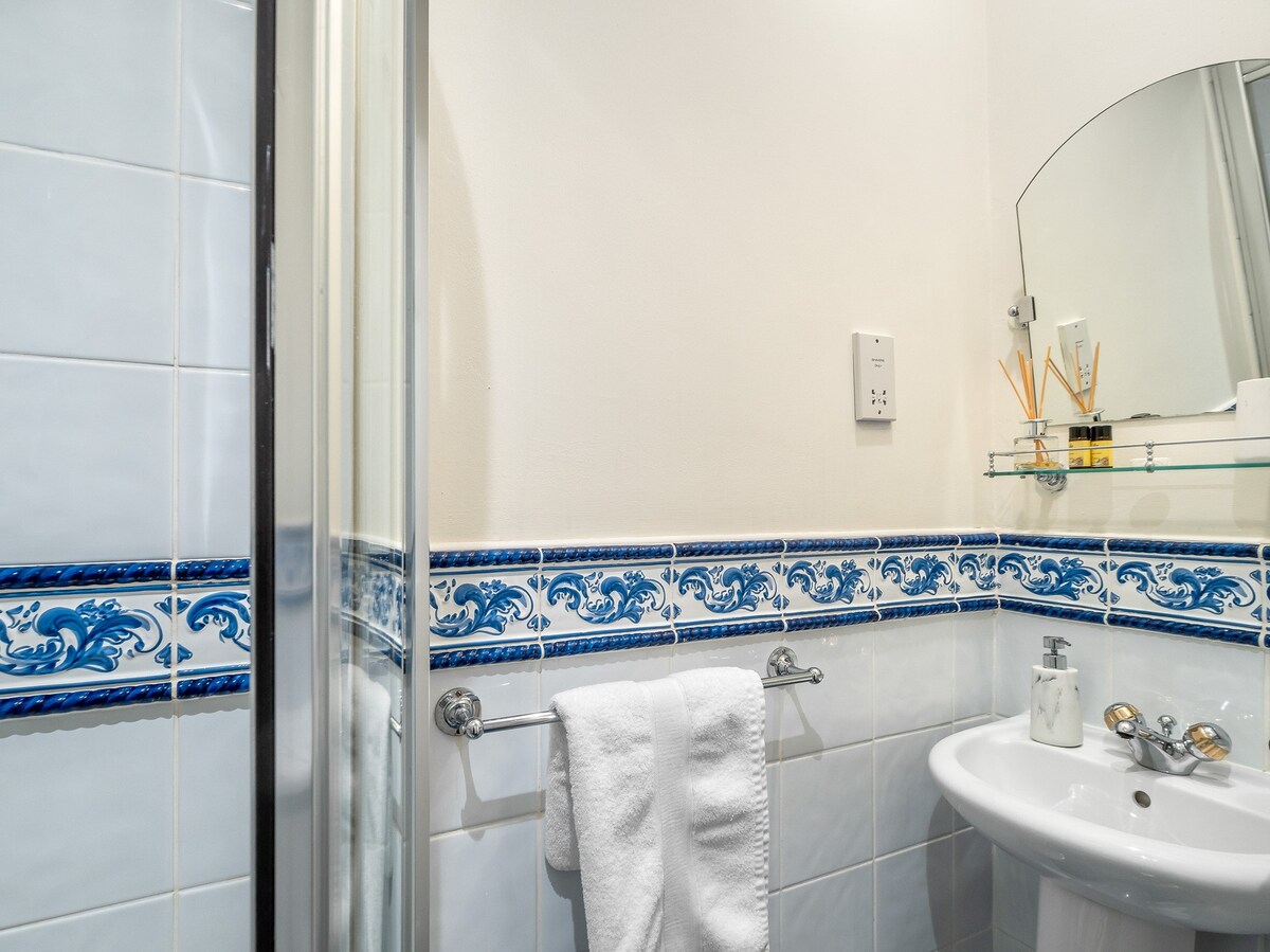 The kitchen is fully equipped with all mod cons including, electric oven and hob, coffee machine, fridge freezer and washer/dryer. The stylish dining table and chairs seats upto 4 guests.