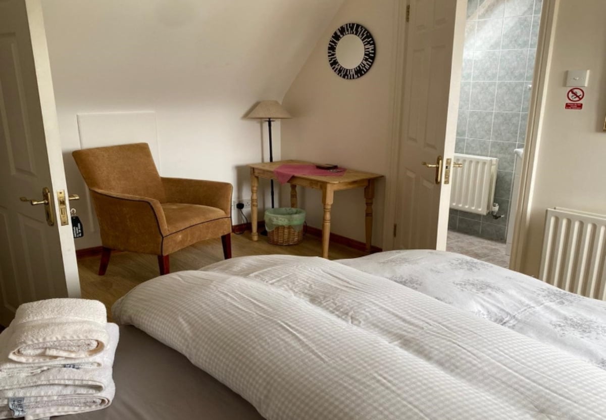 Bedroom 4: Twin room with two single beds, ideal for friends or younger guests. Ensuite shower room.