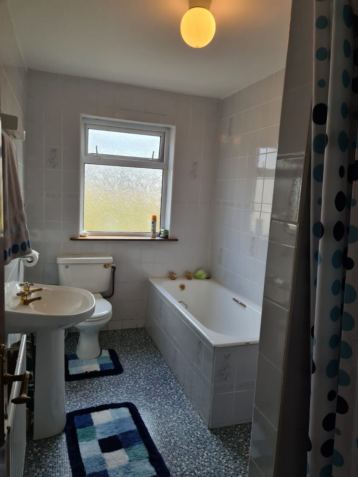 Family bathroom with bath, sink & Wc. Separate shower unit.
