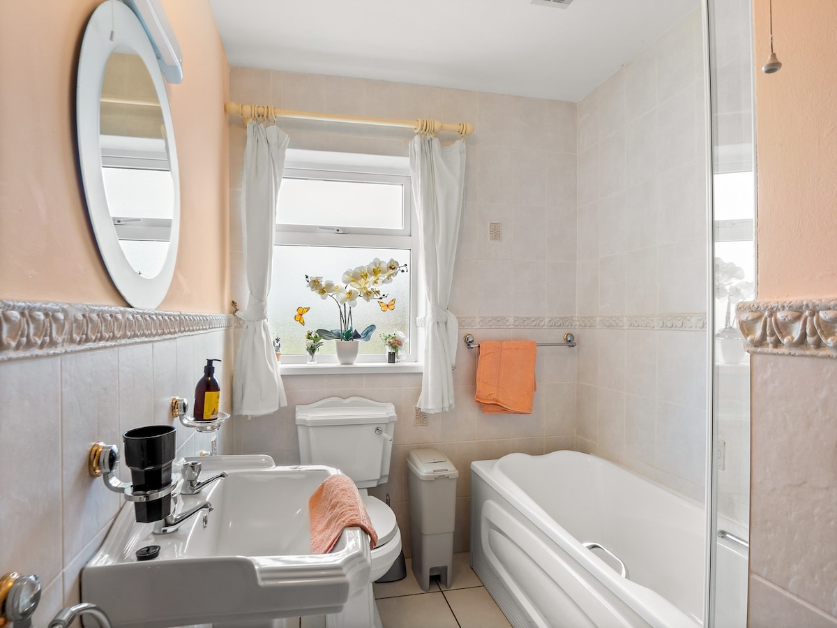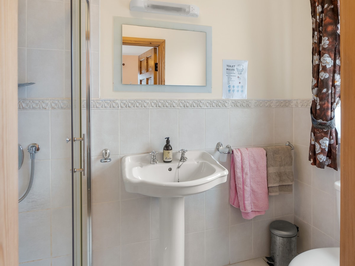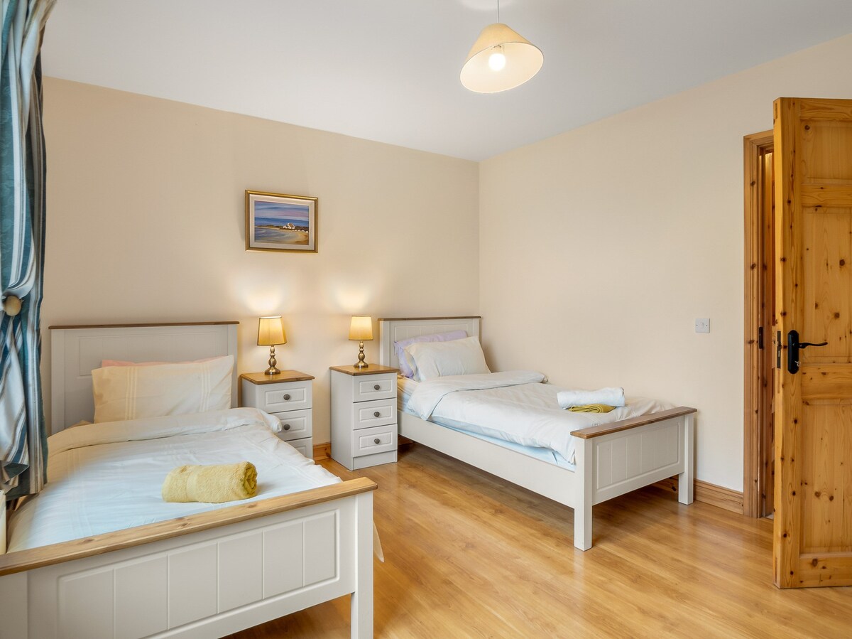 Large twin room with free standing wardrobe,wooden flooring, window to the side of house with lovely views, ensuite shower room