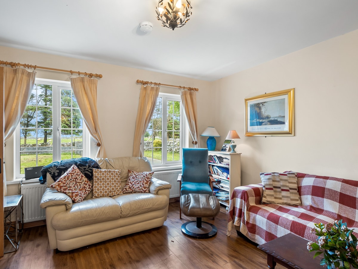 Sitting room has two 2 seater couches, Dvd player/TV with free-to-air channels. Oil central heating with wood burner & open fire. Selection of books, games & DVDs.