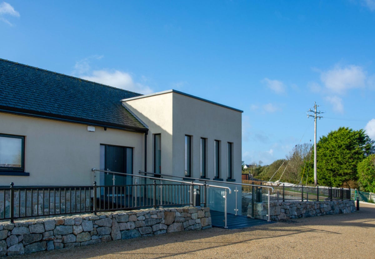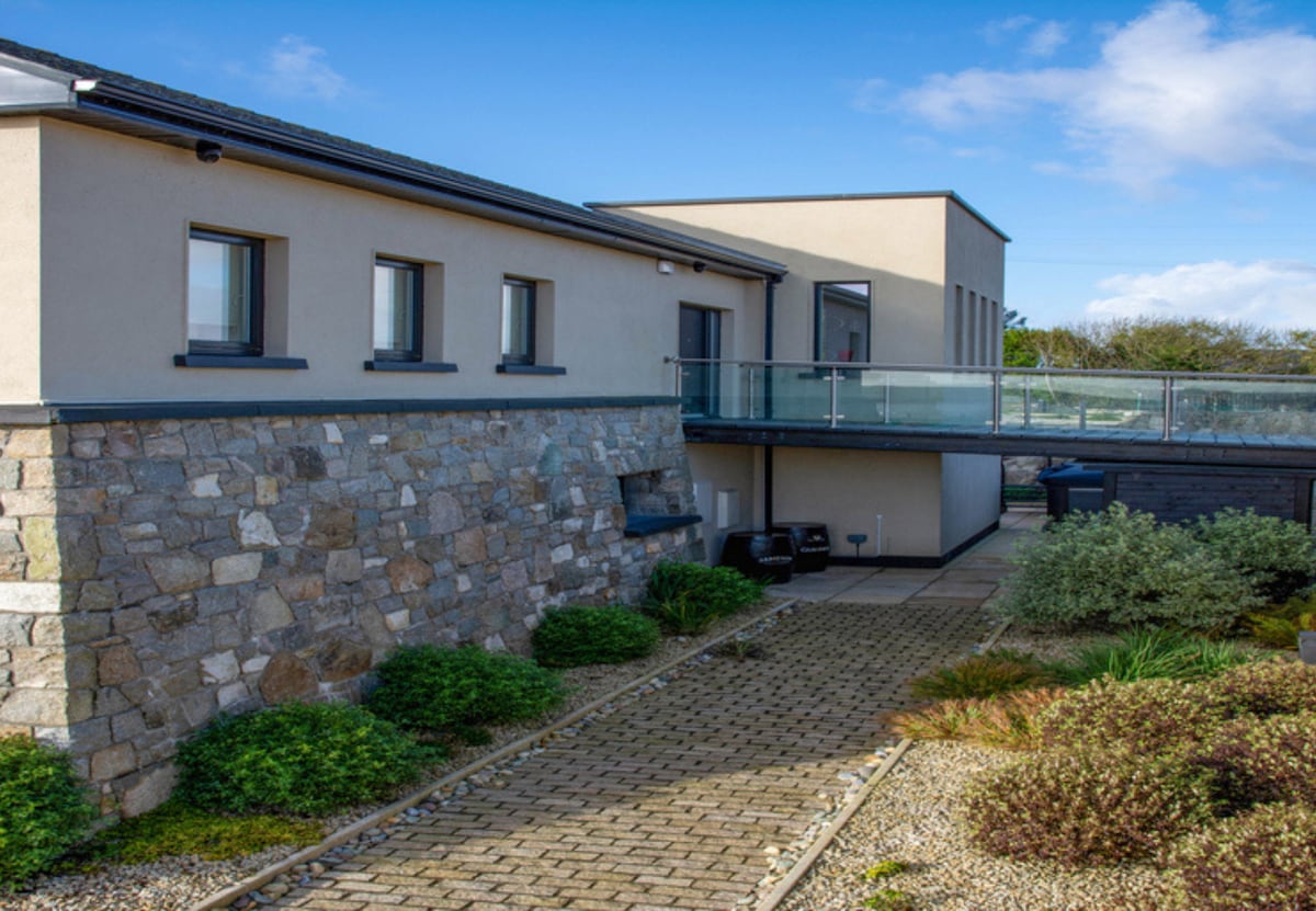 Perched above one of the most active boating piers on the Southern Connemara shores of Galway Bay, and only recently completed, this formidable home employs local materials and the most compelling masonry skills this side of Peru, to exploit its location to the utmost.